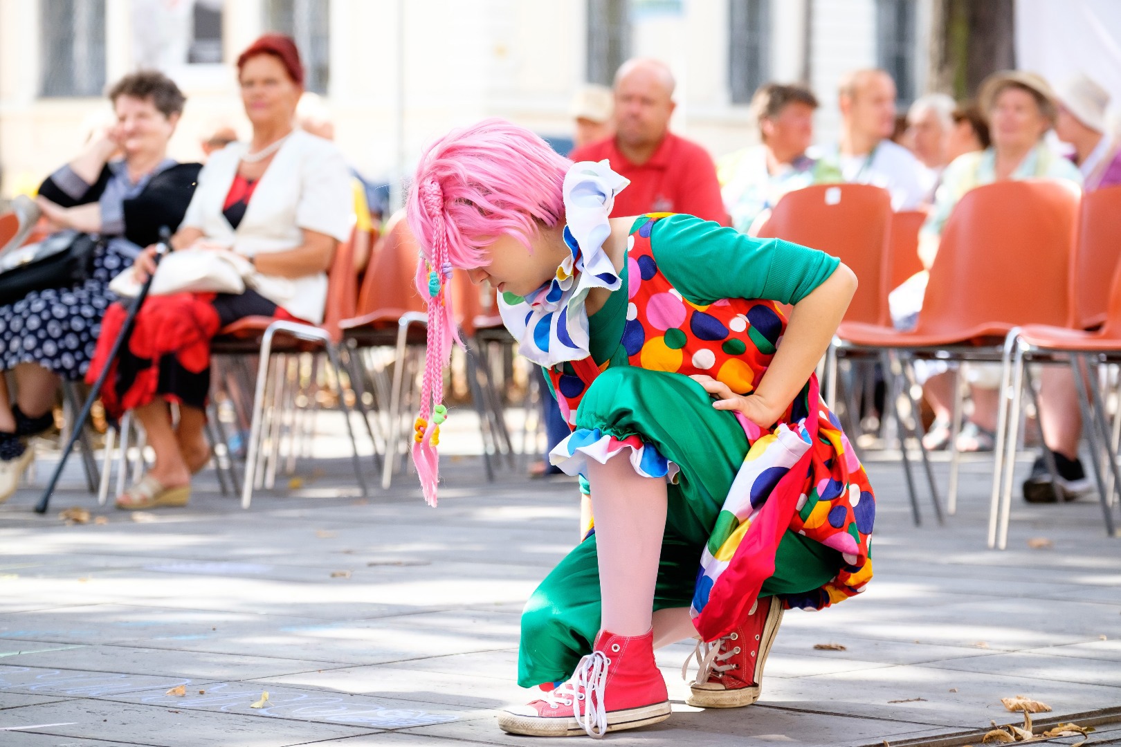 Scena, muzyka, gry i konkursy z nagrodami, kolorowe balony i kwiaty, a też szczudlarze i malowane twarze - tak się bawi „Kolorowa Aleja" na pożegnanie lata.