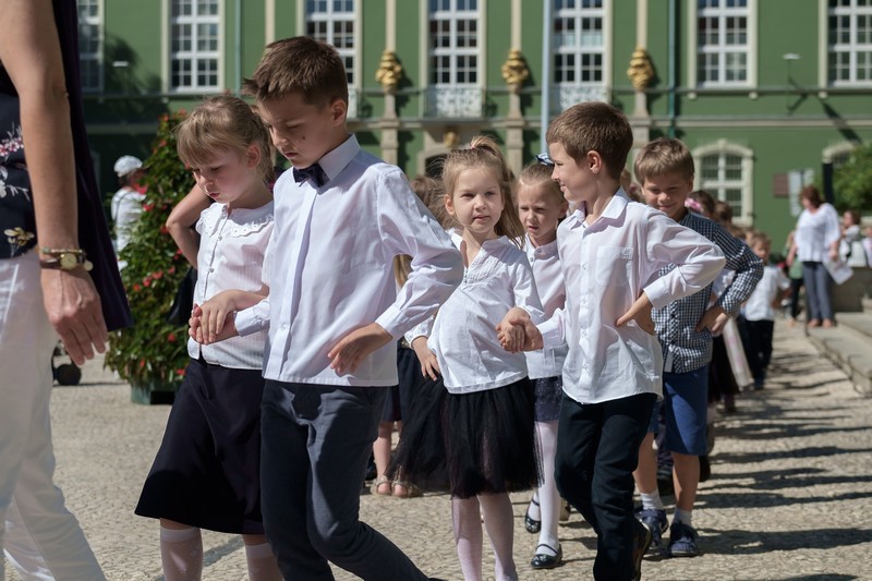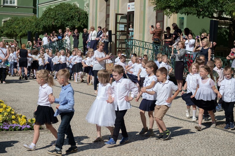 Przed szczecińskim Urzędem Miasta poloneza w środę 20 czerwca odtańczyły przedszkolaki z najstarszych grup. Była to coroczna ceremonia pn. „Pierwszy dzienniczek ucznia”. Fot. Dariusz Gorajski