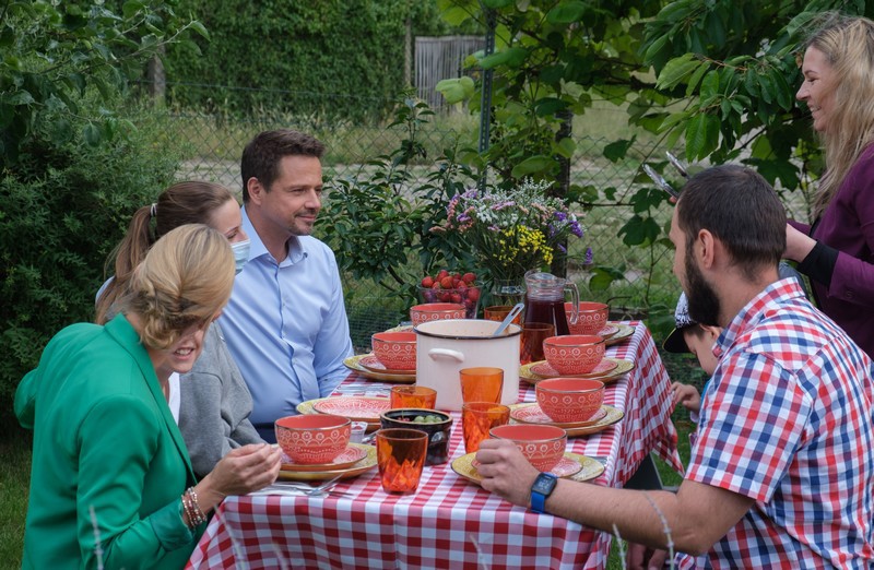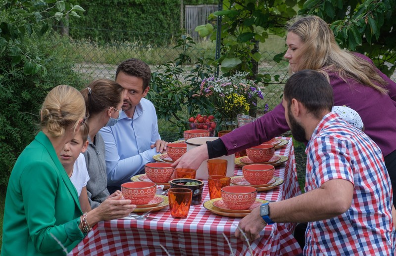Kandydat na prezydenta RP Rafał Trzaskowski w środę (8 lipca).złożył wizytę u rodziny Anny i Aleksandra Gładzików na ich działce - w Rodzinnych Ogrodach Działkowych "Przyjaźń" w Szczecinie.