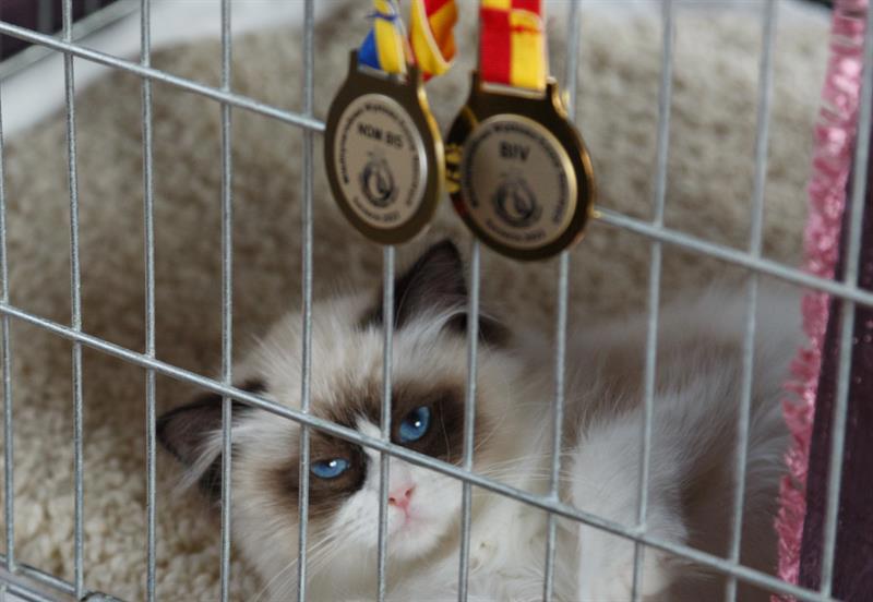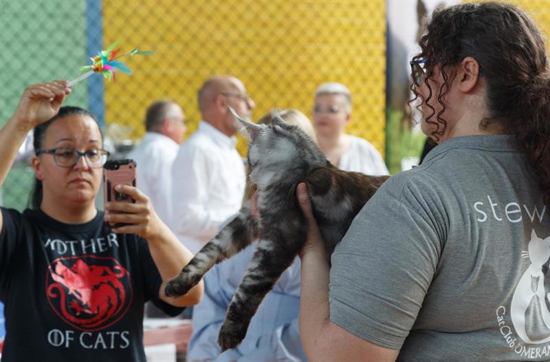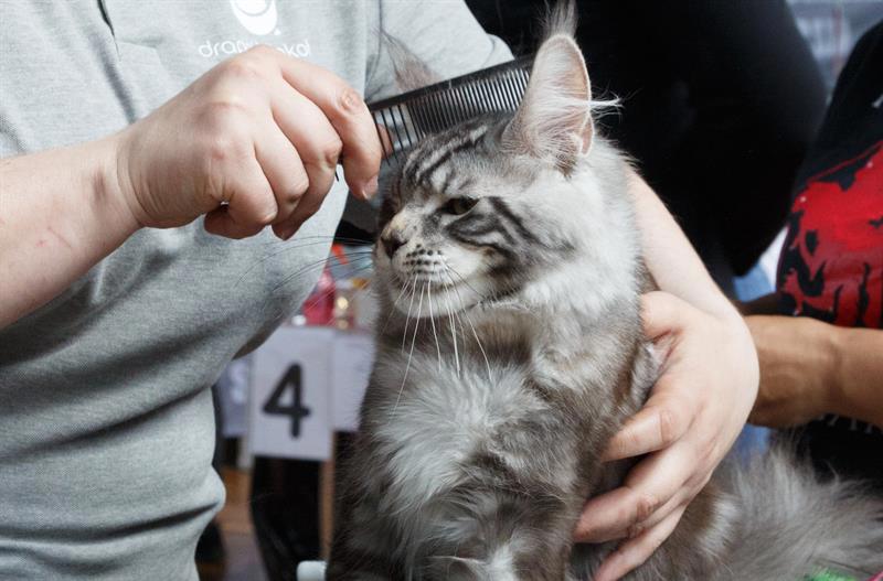 Kocie piękności zabiegają o uwagę zwiedzających i jurorów Międzynarodowej Wystawy Kotów Rasowych w Szczecinie.