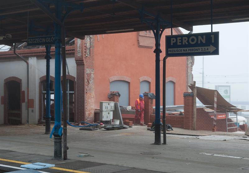 Na spowitym w poniedziałek (14 grudnia) mgłą dworcu Szczecin Główny ekipy budowlane uwijały się jak w ukropie, bo do użytku podróżnym oddany być powinien w tym miesiącu. Termin ten jest jednak jednak mało prawdopodobny, a rzeczywisty ciągle mglisty.