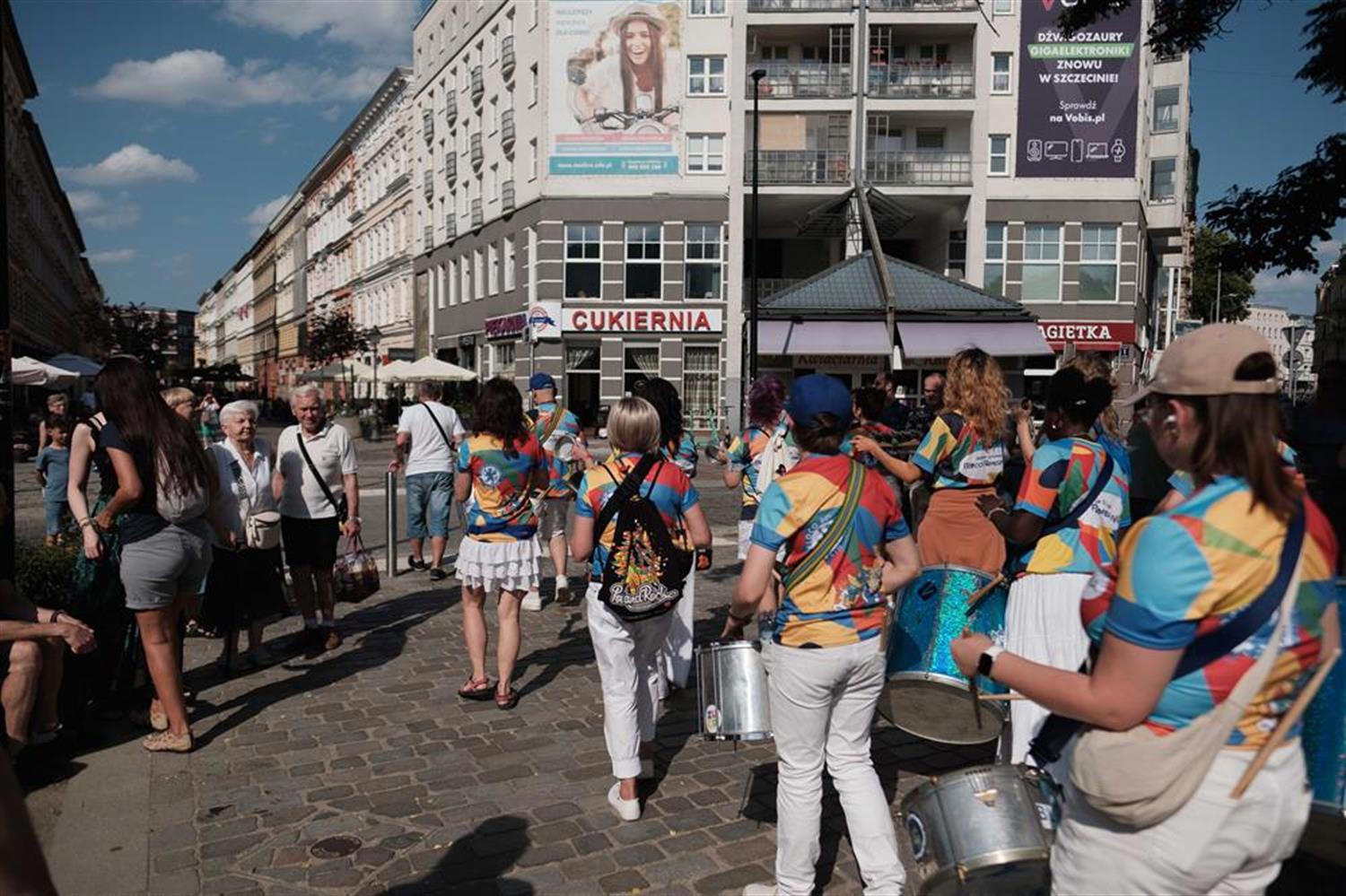 W ramach inauguracji cyklu „Głos i Rytm Brazylii w Szczecinie” zespół Bloco Pomerania porwał przechodniów do tańca na deptaku Bogusława i przed fontanną na placu Zamenhoffa.
