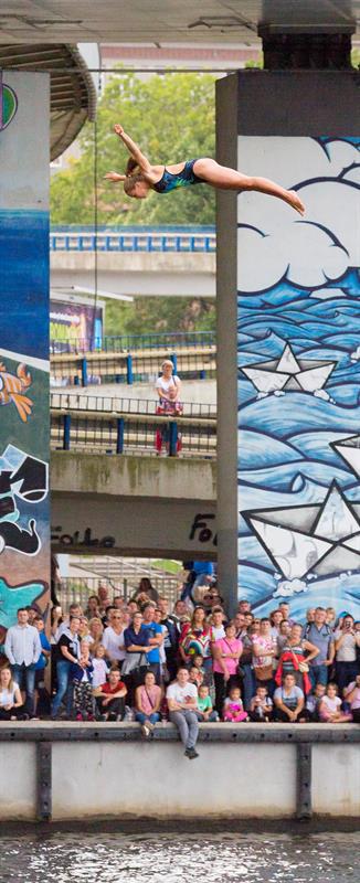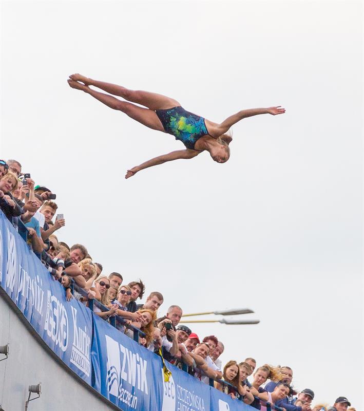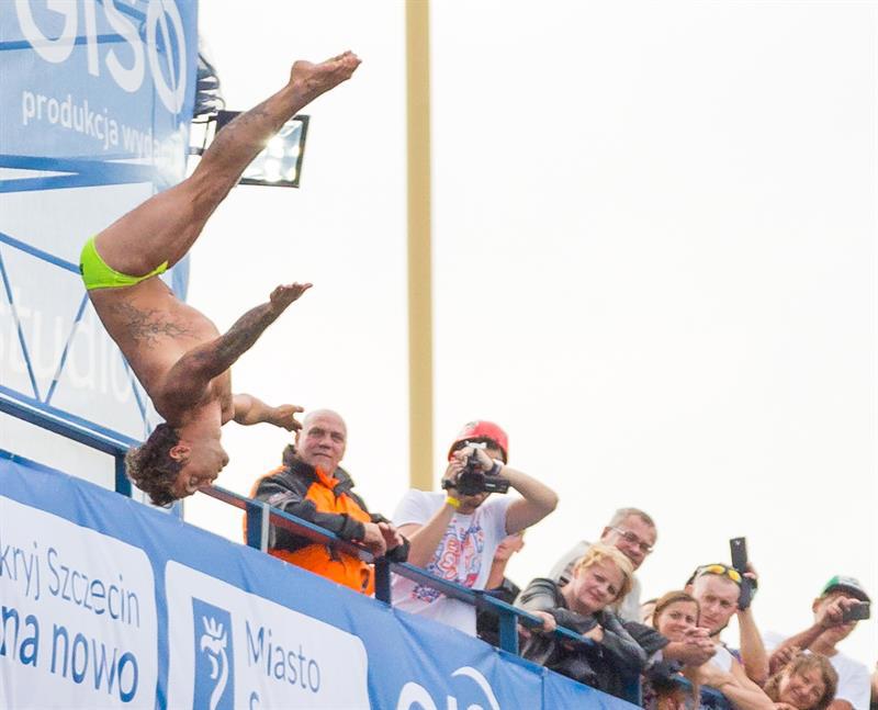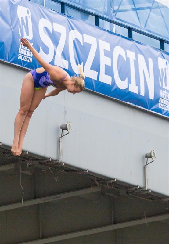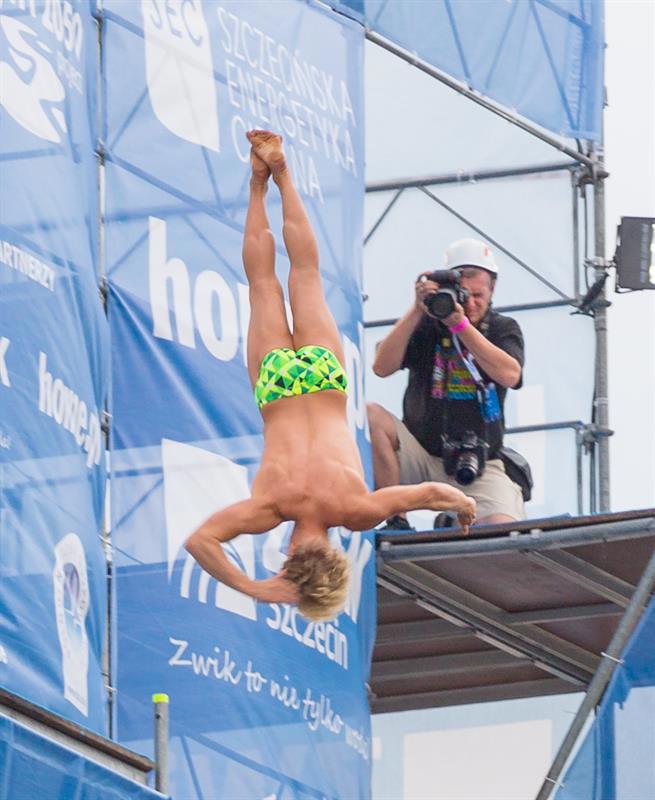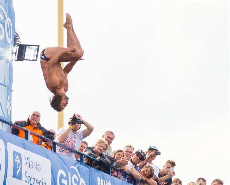 Akrobatyczne skoki do wody z wysokości 20 i 27 metrów, czyli High Diving - to nowość trwającego właśnie na Wałach Chrobrego Festiwalu Ogni Sztucznych Pyromagic.