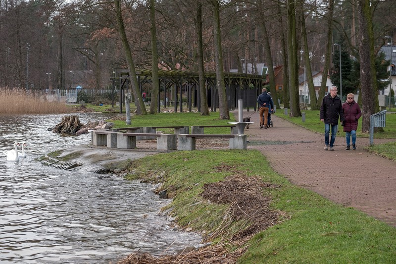 Aura - wbrew kalendarzowi - raczej wiosenna, więc sporo osób w 2018 r. weszło spacerowym krokiem, np. nad jez. Miedwie.