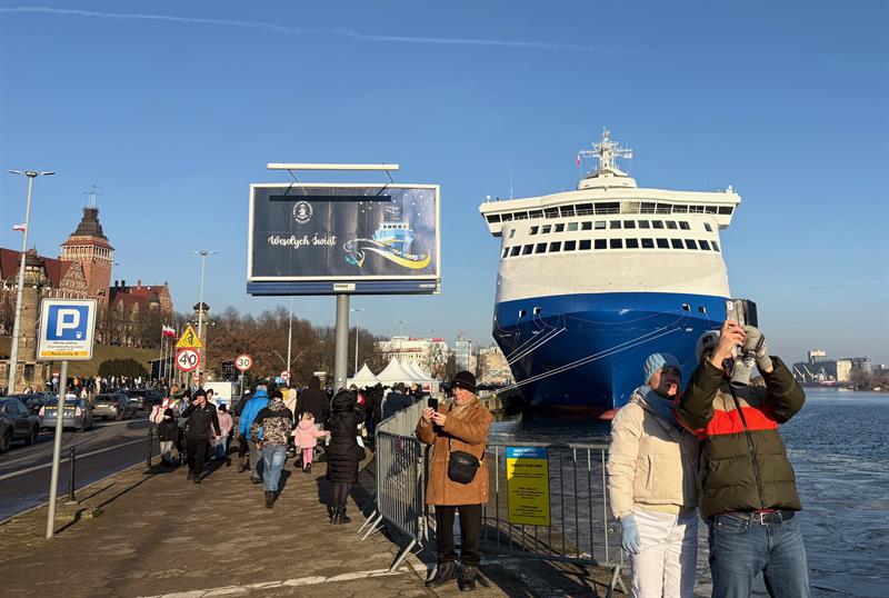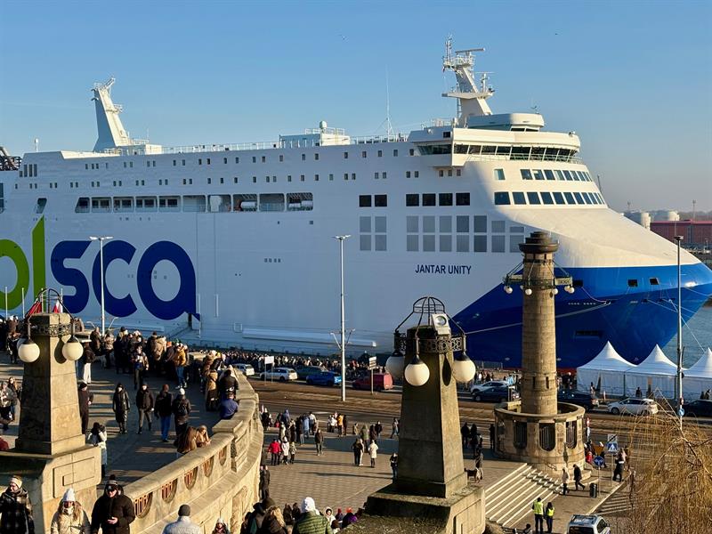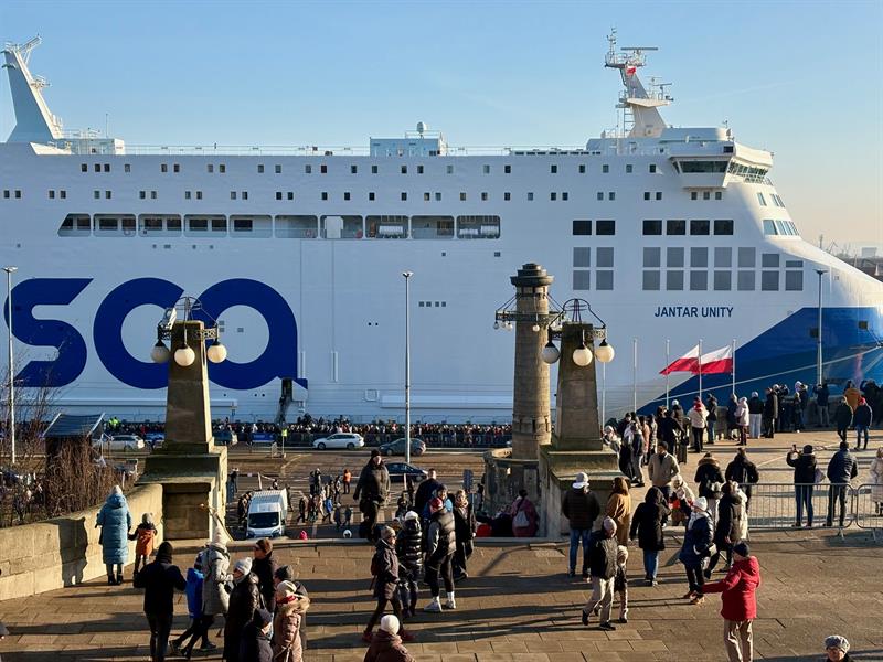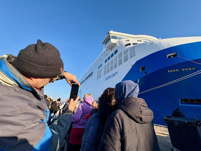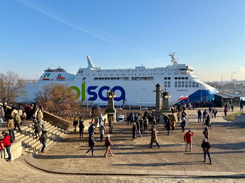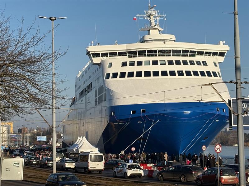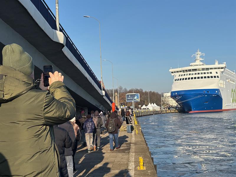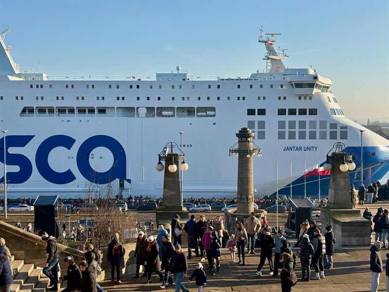 W niedzielę (18 stycznia) można było zwiedzać prom "Jantar Unity" zacumowany przy Wałach Chrobrego. Mimo mrozu i wiatru od rana utworzyła się gigantyczna kolejka.