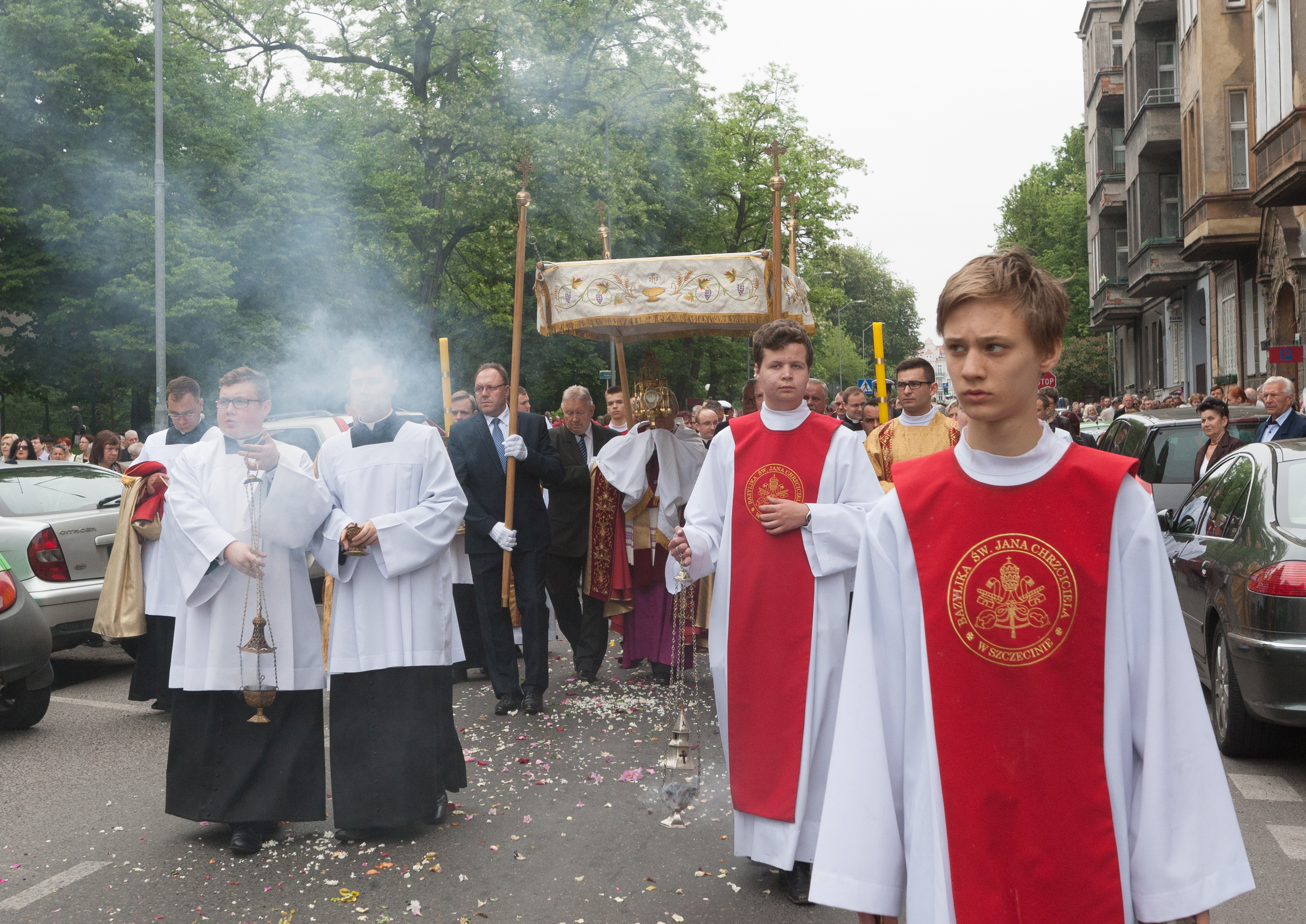Kilka tysięcy wiernych wzięło udział w procesji Bożego Ciała, która miała miejsce w centrum Szczecina. Uroczystości zaczęły się w bazylice św. Jan Chrzciciela, skąd po mszy wierni przeszli ulicami miasta do bazyliki archikatedralnej św. Jakuba. Procesji przewodził abp. Andrzej Dzięga. Podobne przejścia miały miejsce w innych częściach miasta.