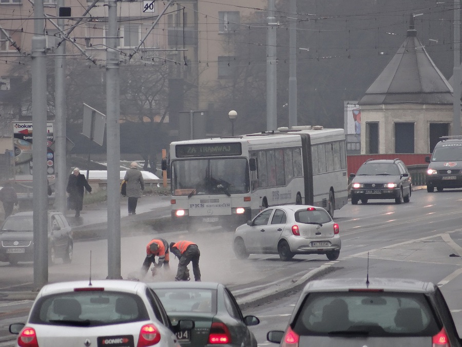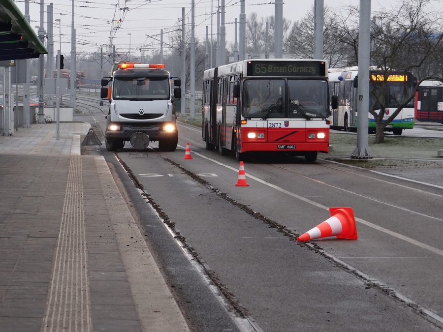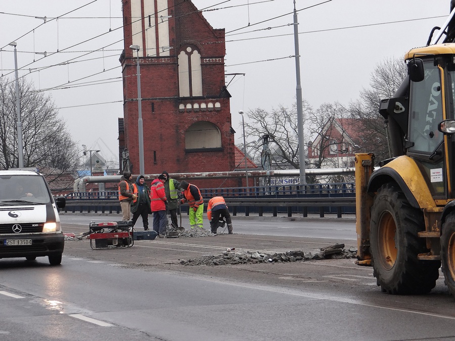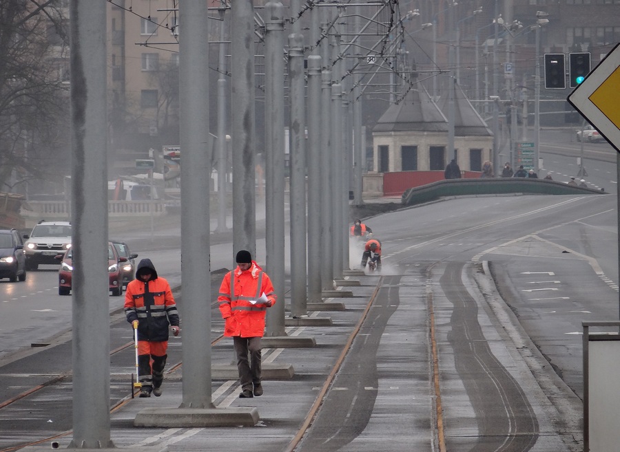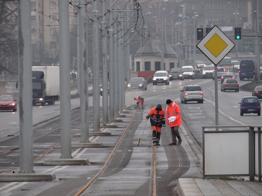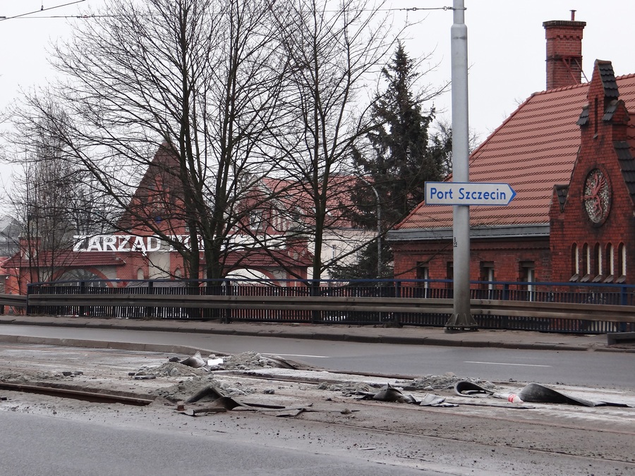 Ani w najbliższą niedzielę, ani w poniedziałek (18.01.) trasą od mostu Długiego ulicami Energetyków i Gdańską przez Basen Górniczy do pętli Turkusowa nie pojada wciąż szczecińskie tramwaje.W piątek (15 bm.) od rana, kiedy trwał obchód przez komisje odbiorową 4-kilometrowego odcinka trasy tzw. szybkiego tramwaju, gdzie także prowadzone były roboty przy wymianie puszczających spawów szyn, nic nie zapowiadało, że na nowych torowiskach w ulicach Energetyków i Gdańskiej także roboty poprawkowe zakończą sie do soboty. Te trwały w najlepsze m.in. na dojeżdzie do przyystanku u zbiegu ulic Gdańskiej i Merkatora, na wysokości skrzyżowania z ul. kanał Parnicki, na moście Portowym nad Parnicą i w ul. Energetyków. Obrazują to poniższe zdjęcia. CP