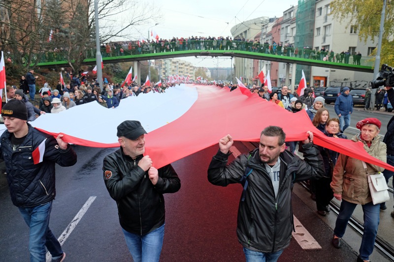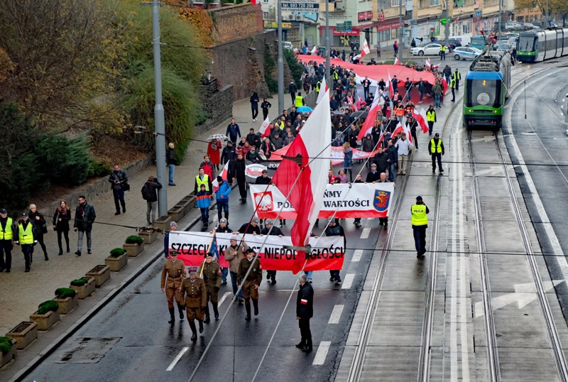 W setną rocznicę odzyskania przez Polskę niepodległości ulicami Szczecina przeszedł biało-czerwony Marsz Niepodległości.
