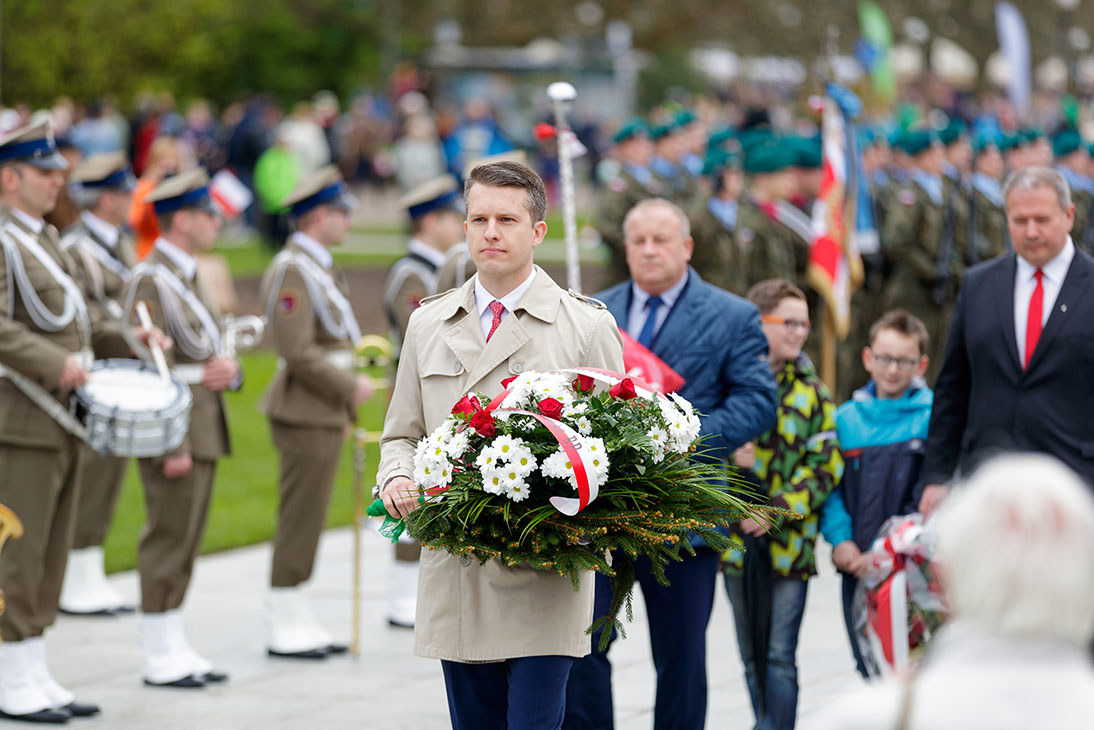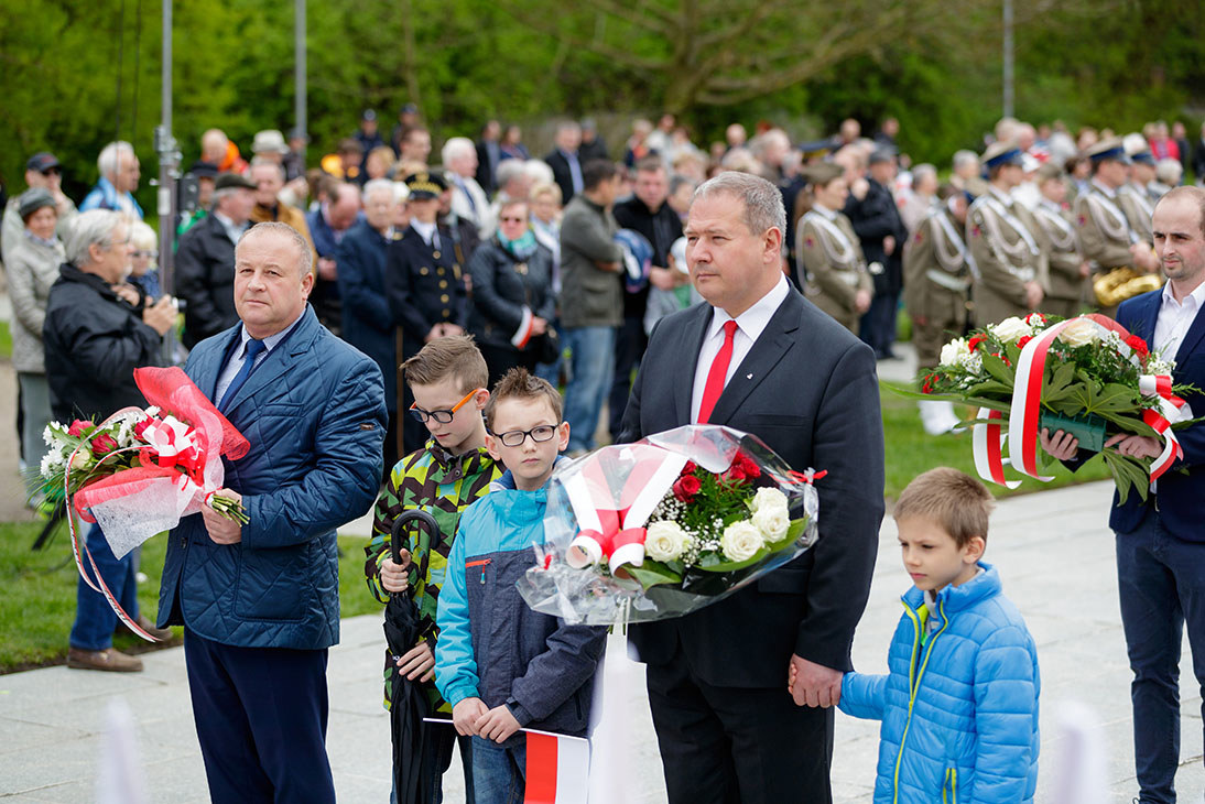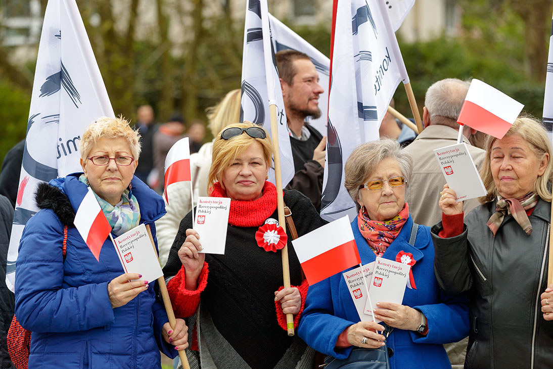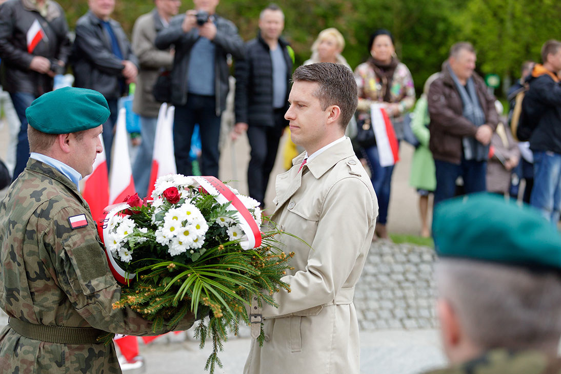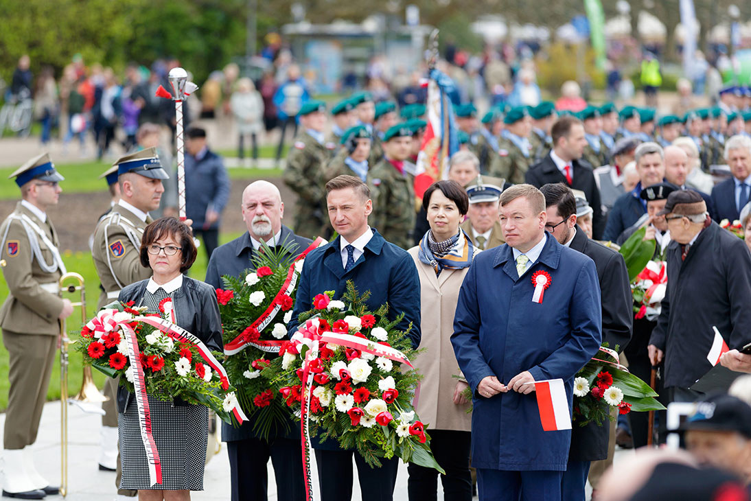 Wojewódzkie uroczystości patriotyczne z okazji 226. rocznicy uchwalenia Konstytucji 3 maja odbyły się w środę przy pomniku Czynu Polaków na Jasnych Błoniach w Szczecinie. Udział w nich wzięli przedstawiciele różnych organizacji, instytucji, żołnierze, kombatanci, parlamentarzyści, harcerze, uczniowie... Przebiegły spokojnie. Rozpoczęły się meldunkiem i hymnem narodowym. Po okolicznościowych przemówieniach delegacje różnych środowisk złożyły kwiaty pod pomnikiem.