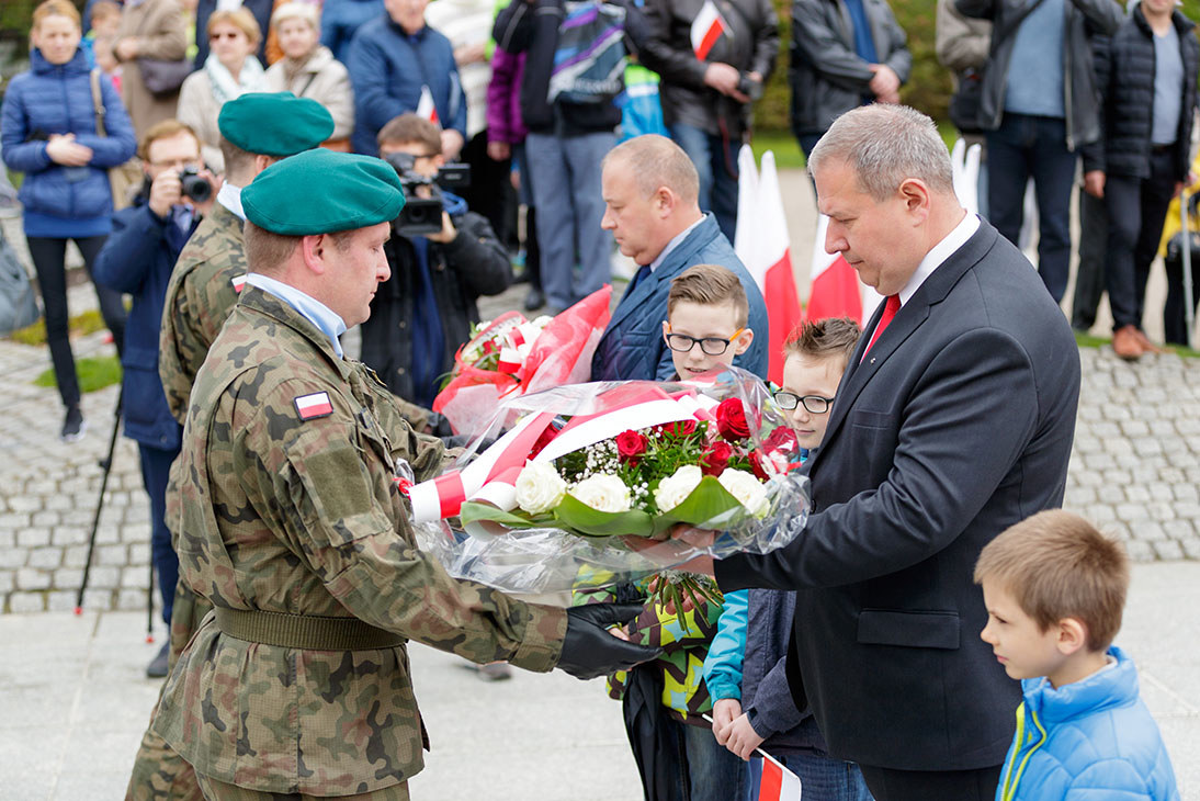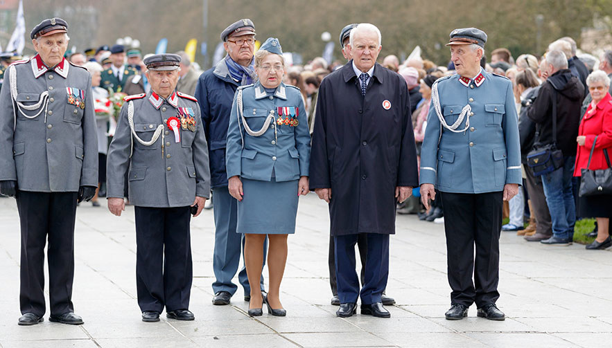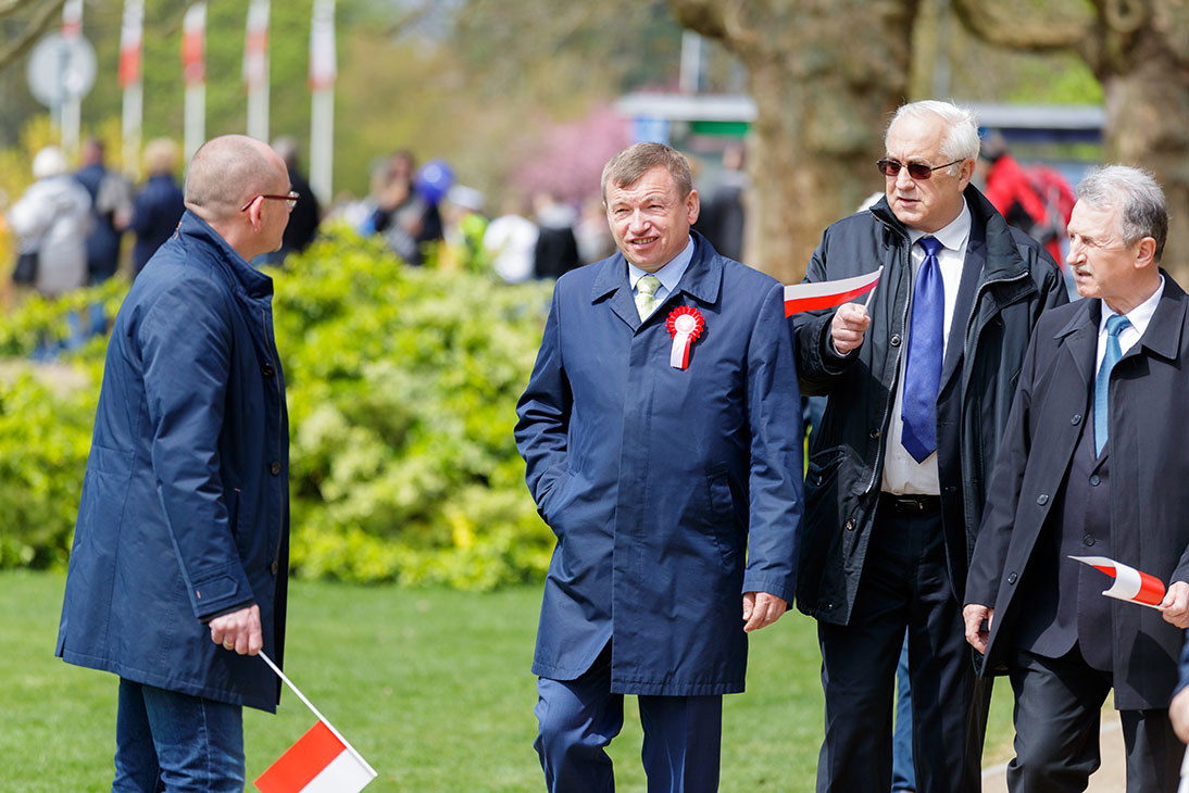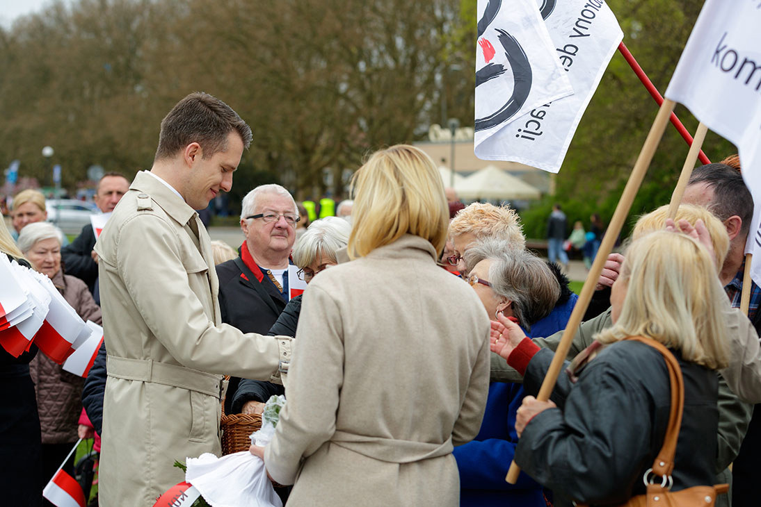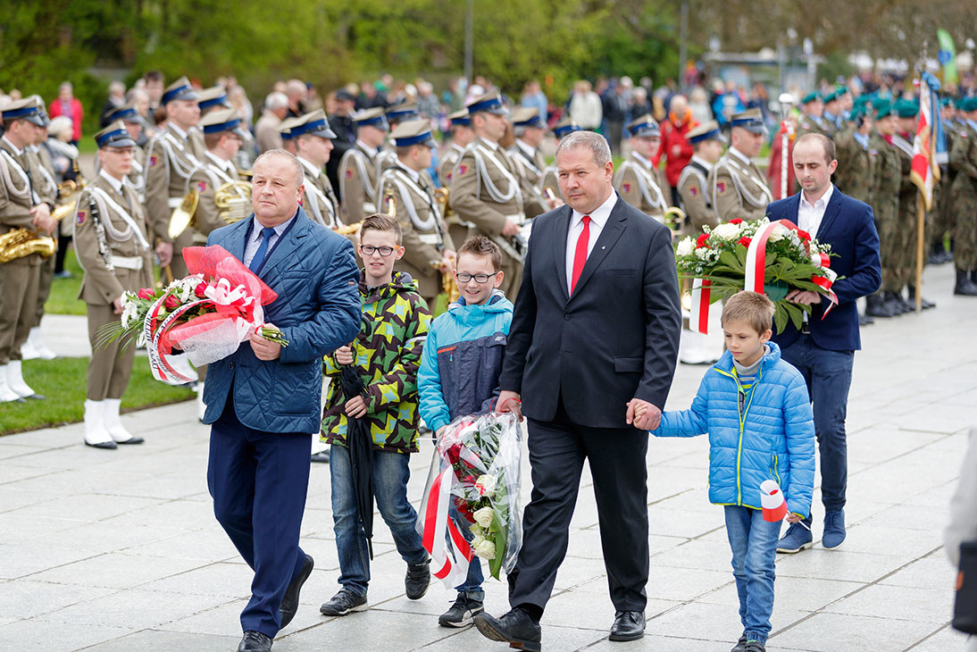 Wojewódzkie uroczystości patriotyczne z okazji 226. rocznicy uchwalenia Konstytucji 3 maja odbyły się w środę przy pomniku Czynu Polaków na Jasnych Błoniach w Szczecinie. Udział w nich wzięli przedstawiciele różnych organizacji, instytucji, żołnierze, kombatanci, parlamentarzyści, harcerze, uczniowie... Przebiegły spokojnie. Rozpoczęły się meldunkiem i hymnem narodowym. Po okolicznościowych przemówieniach delegacje różnych środowisk złożyły kwiaty pod pomnikiem.
