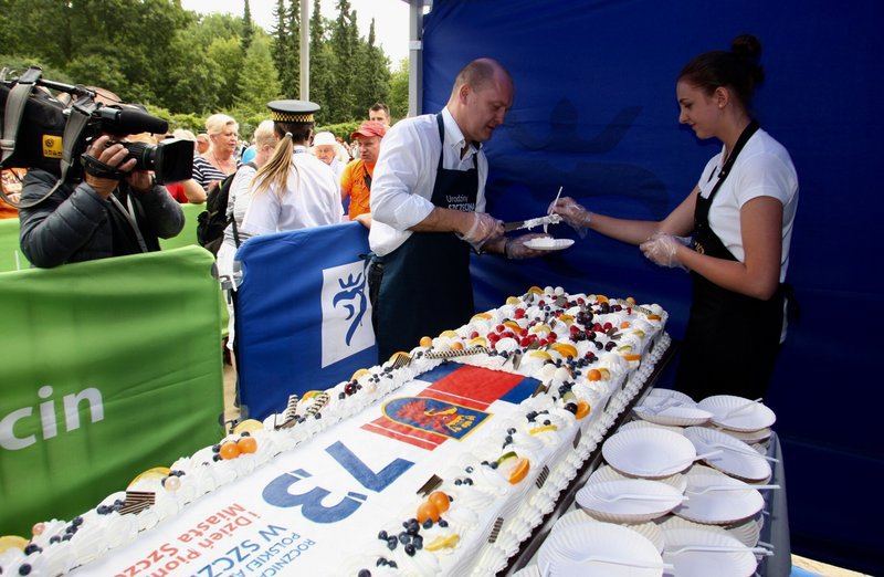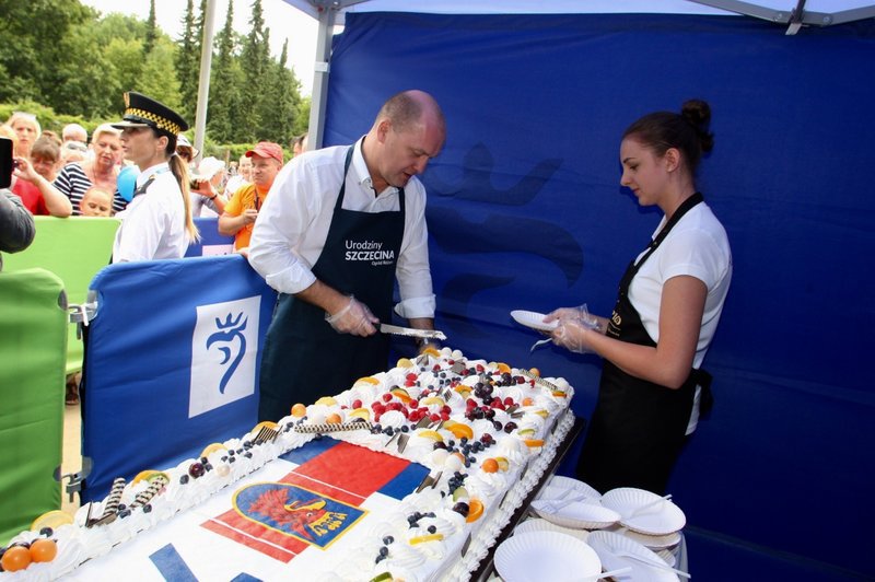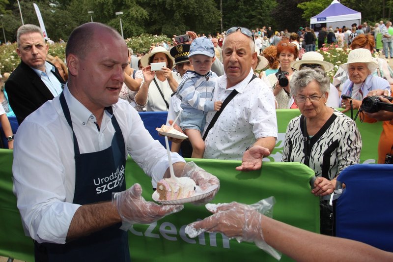 W Ogrodzie Różanym w sobotę obchodzono 73. urodziny Szczecina. Tuż po godz. 12 rozpoczęła się najbardziej oczekiwana przez wiele osób część uroczystości - dzielenie urodzinowego tortu. Nie zabrakło też innych atrakcji.