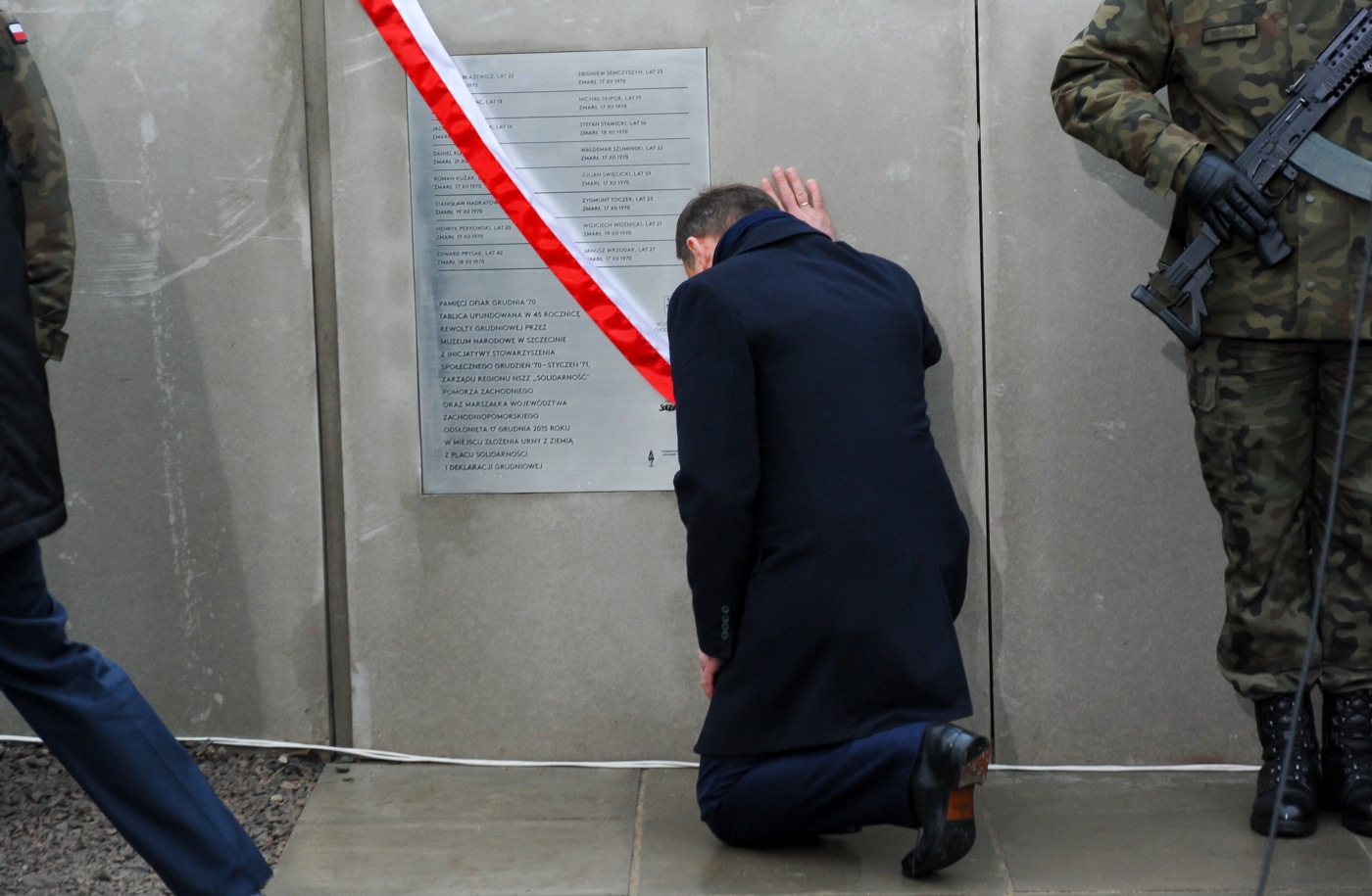 Prezydent Polski Andrzej Duda odsłonił w Szczecinie Tablicę Pamięci Ofiar Grudnia '70, wmurowaną w ścianę południową Muzeum Dialogu Przełomy. W czwartek, w 45. rocznicę krwawego stłumienia robotniczych protestów (Polacy w 1970 r. sprzeciwili się podwyżce cen, a władza komunistyczna użyła przeciw nim czołgów), Andrzej Duda podkreślił rolę Szczecina w polskiej drodze do wolności.