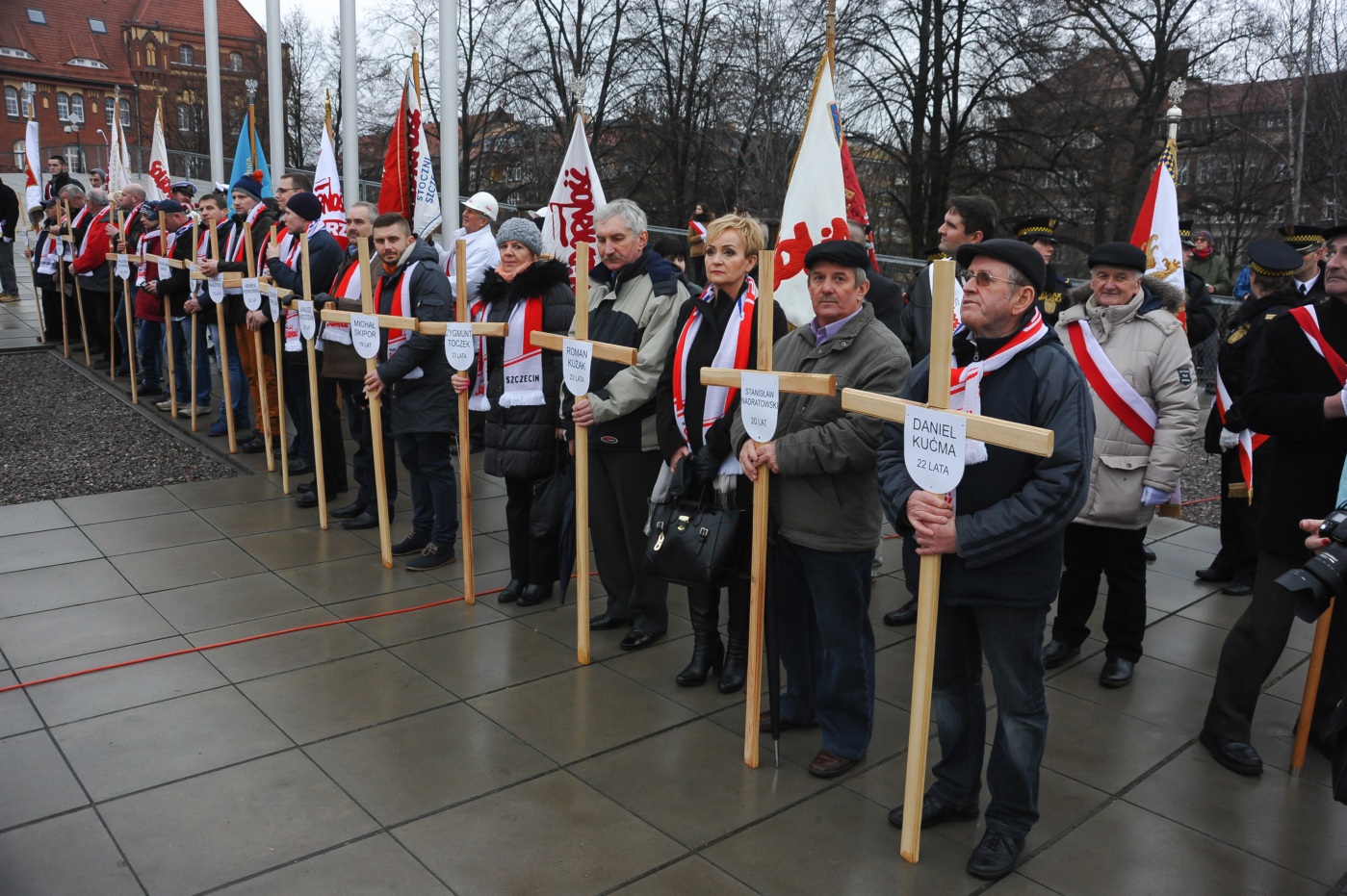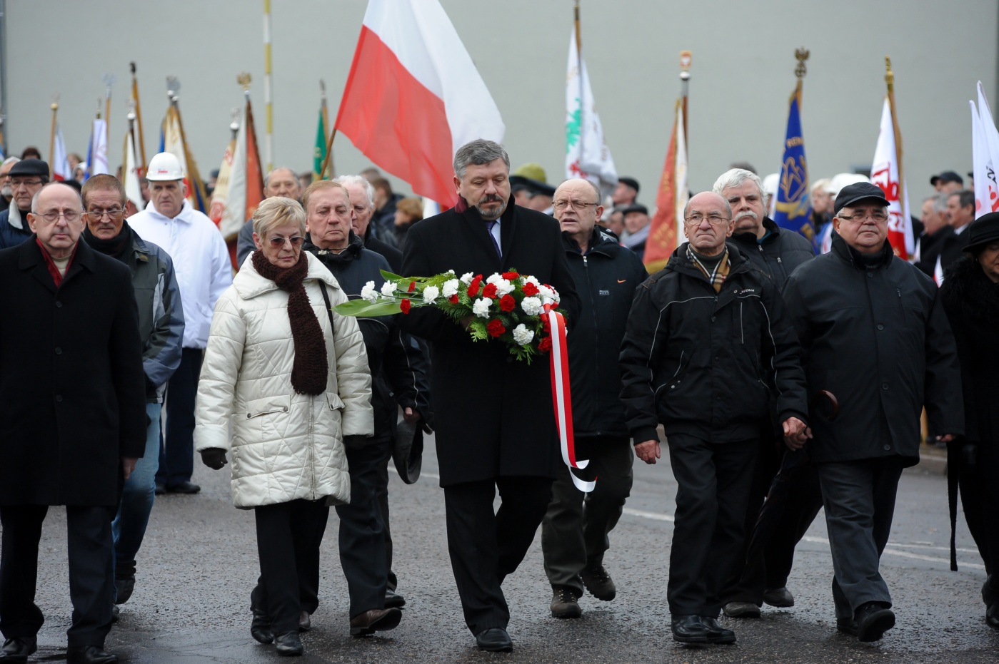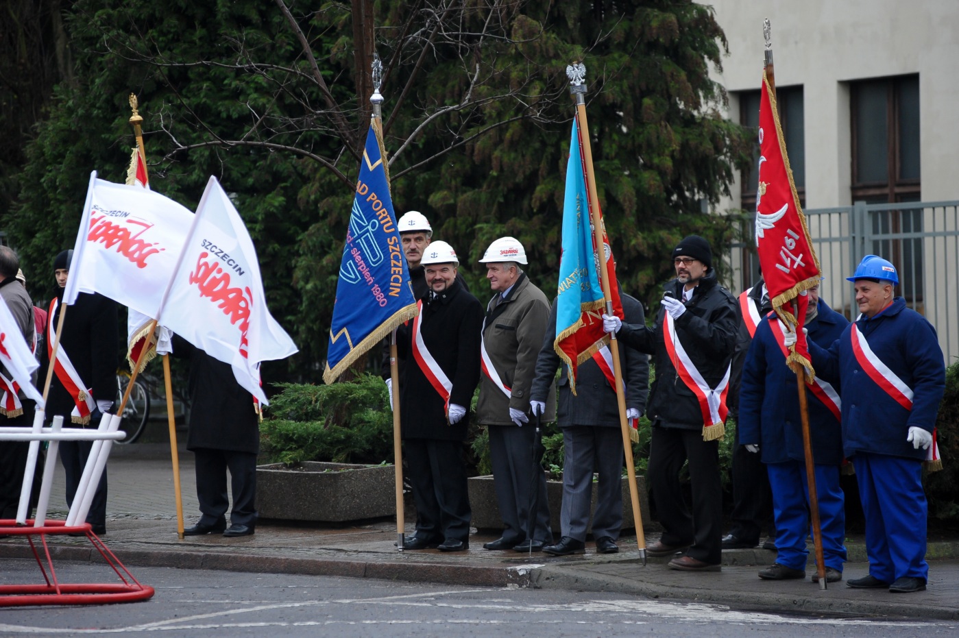 Wcześniej odbyły się uroczystości przed bramą główną Stoczni Szczecińskiej.