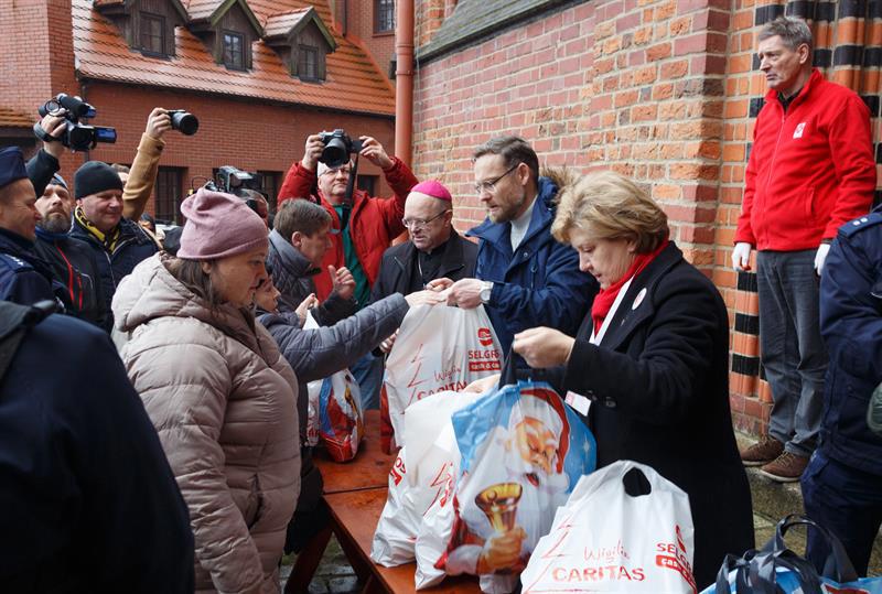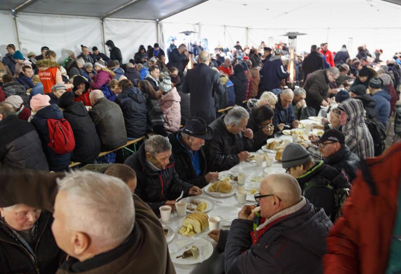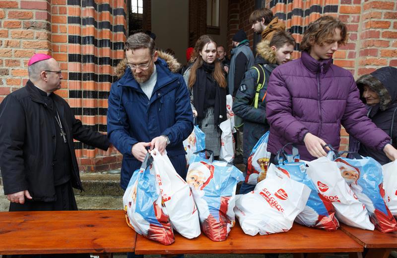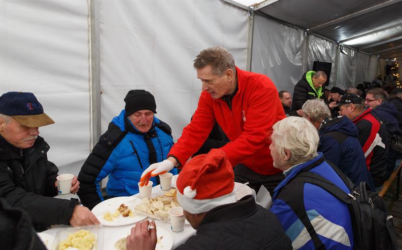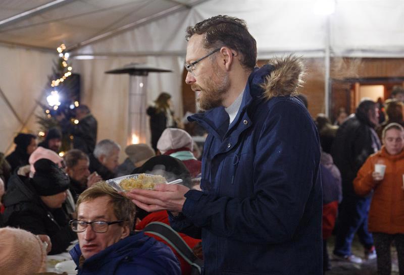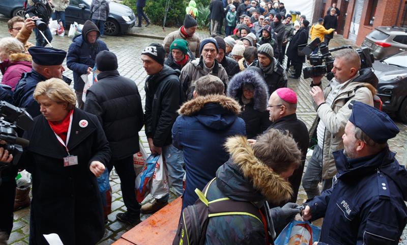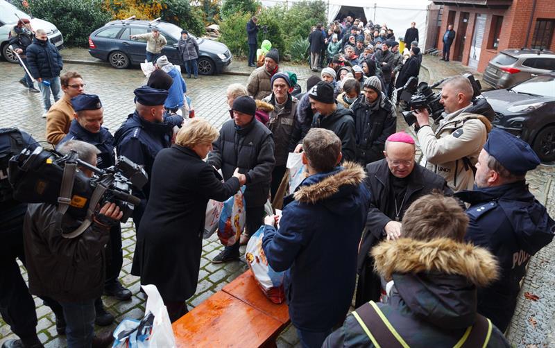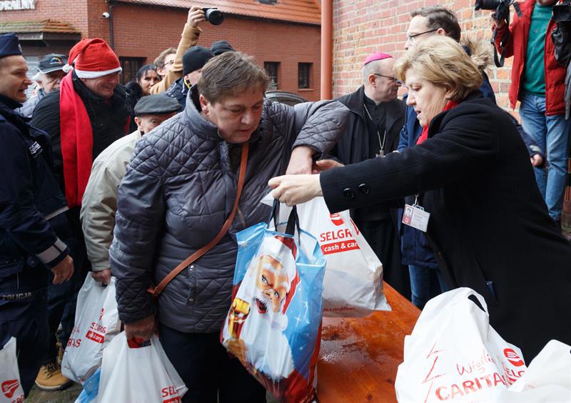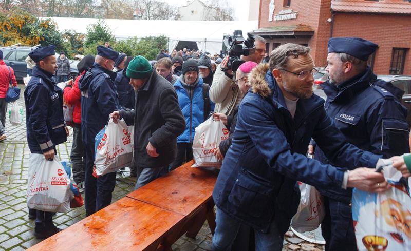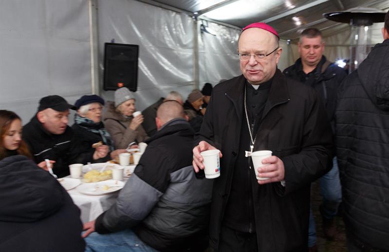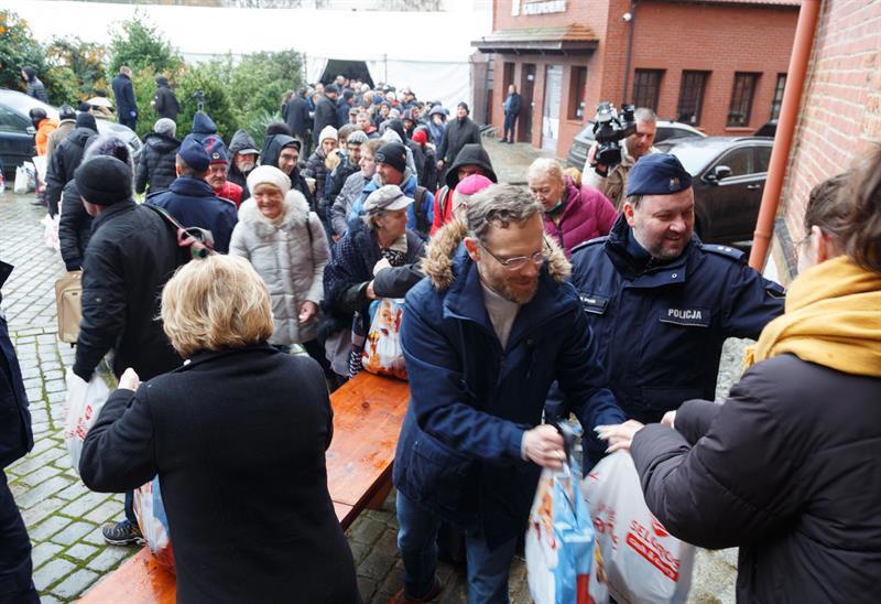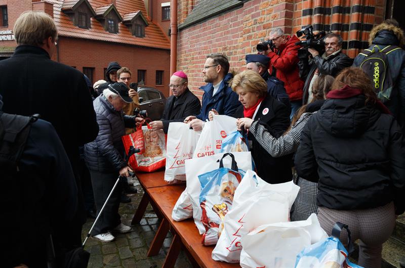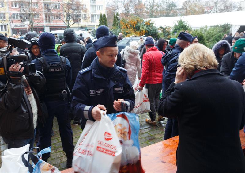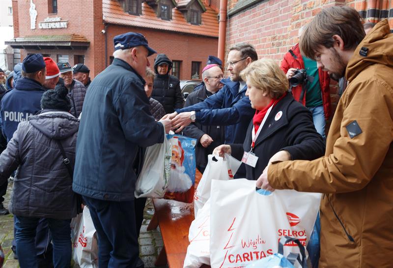 Karp na ciepło, śledzie, czerwony barszczyk oraz pierogi – to tylko niektóre z potraw jakie zagościły na wigilijnym stole ustawionym 24 grudnia przy Bazylice Archikatedralnej pw. św. Jakuba w Szczecinie.