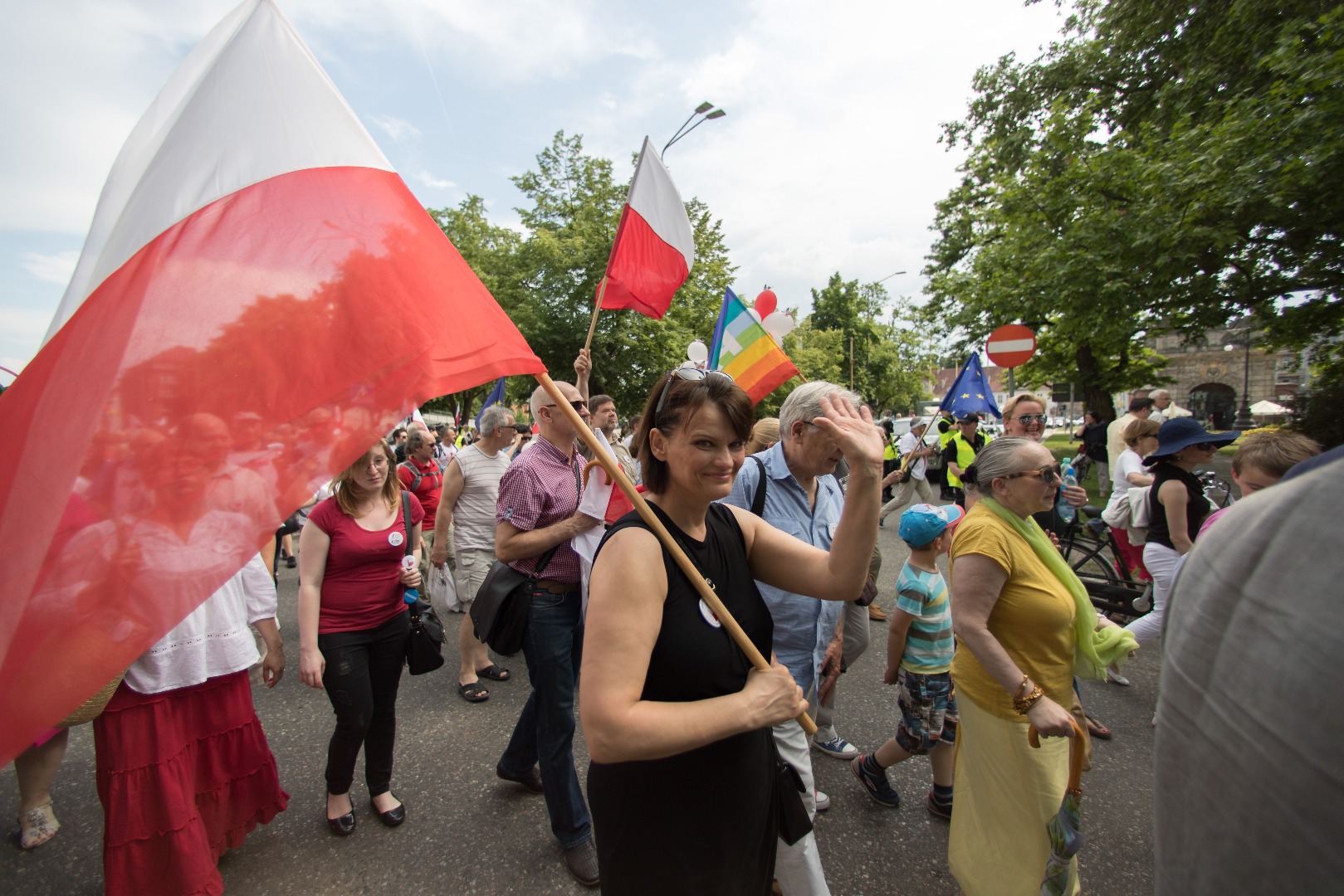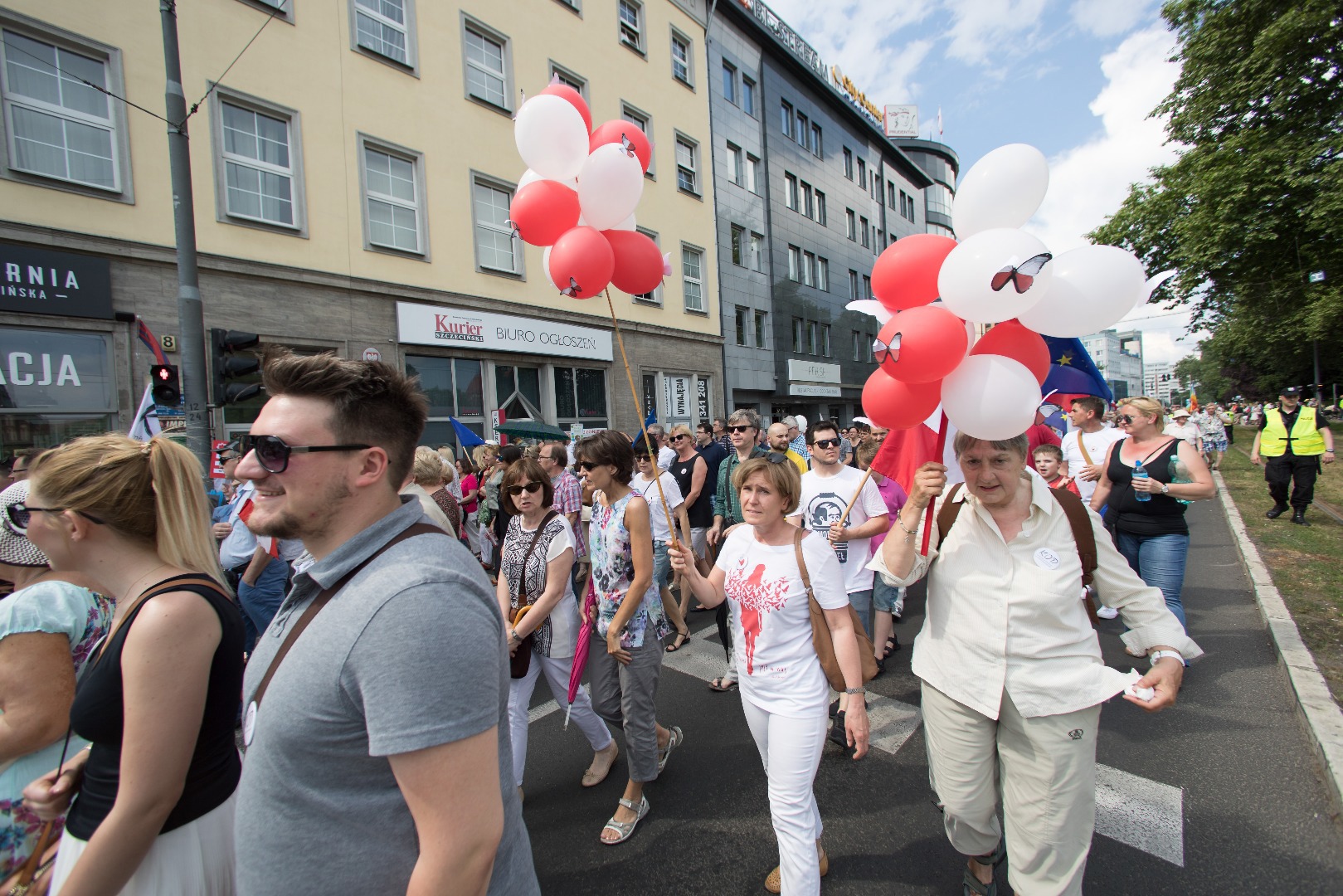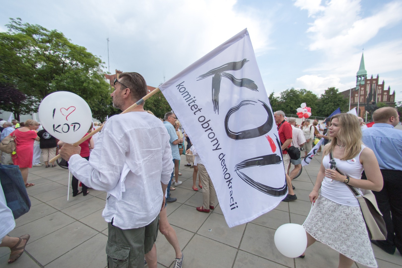 Łańcuch rąk, przy dźwiękach piosenki Johna Lennona - "Imagine" poprzedził toast wodą za wolność na spotkaniu Komitetu Obrony Demokracji na Jasnych Błoniach. Następnie punktualnie o godz. 17 zabrzmiał, podobnie jak na podobnych zgromadzeniach w całej Polsce, hymn państwowy.