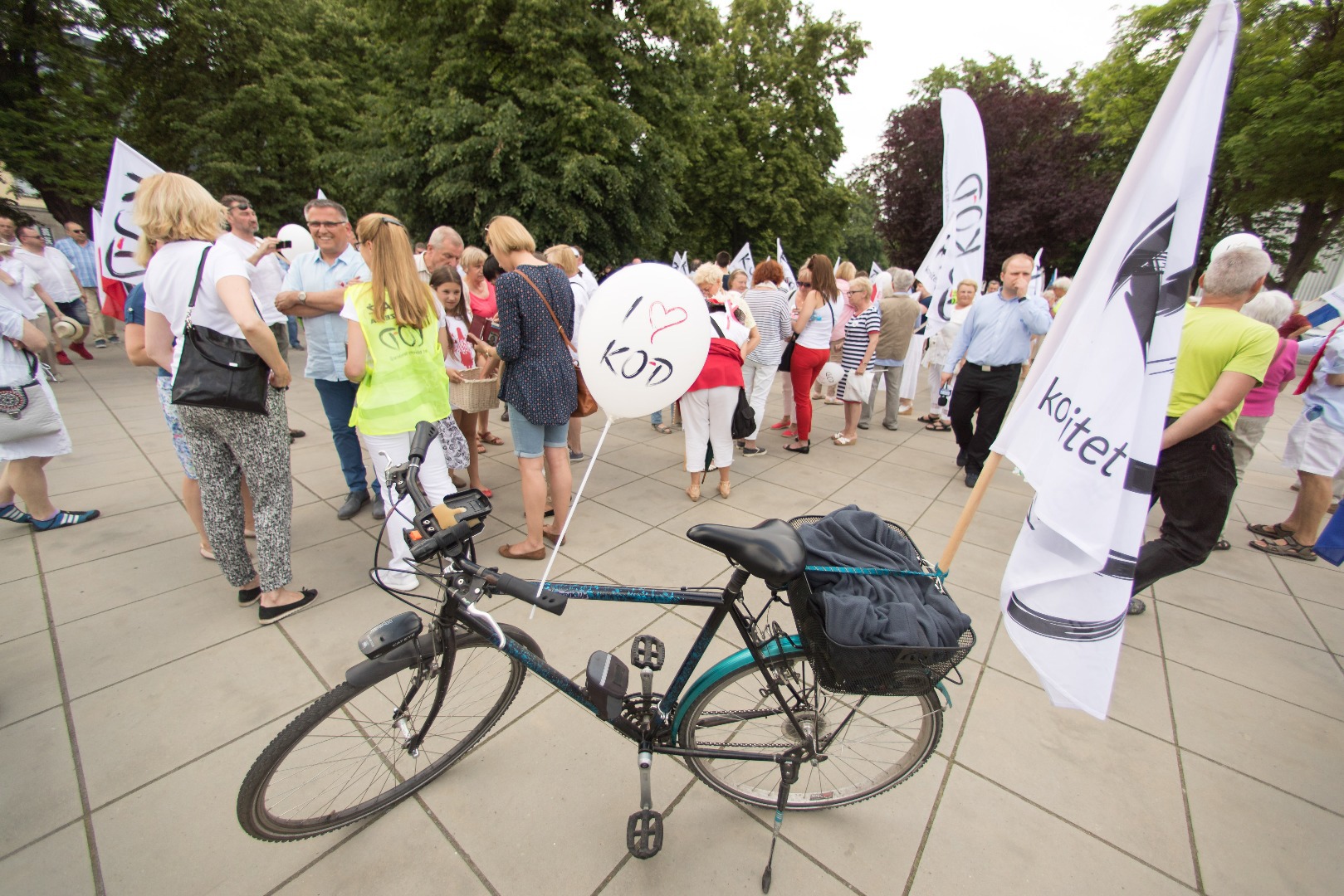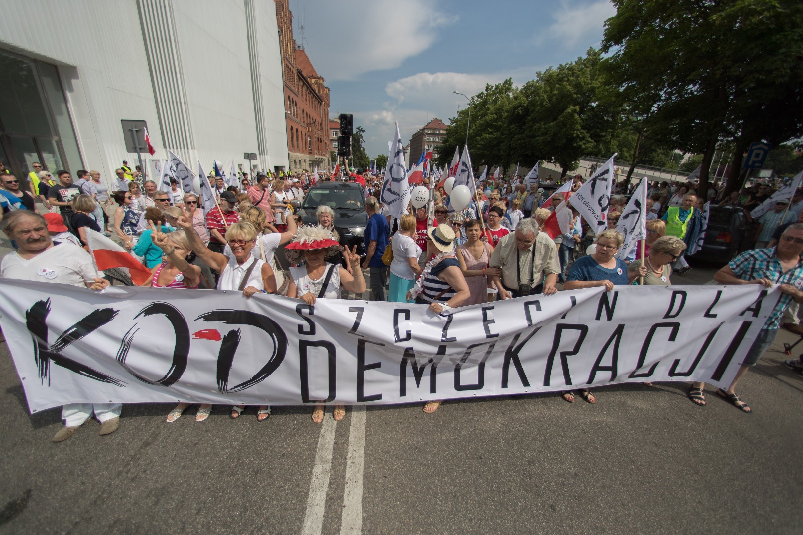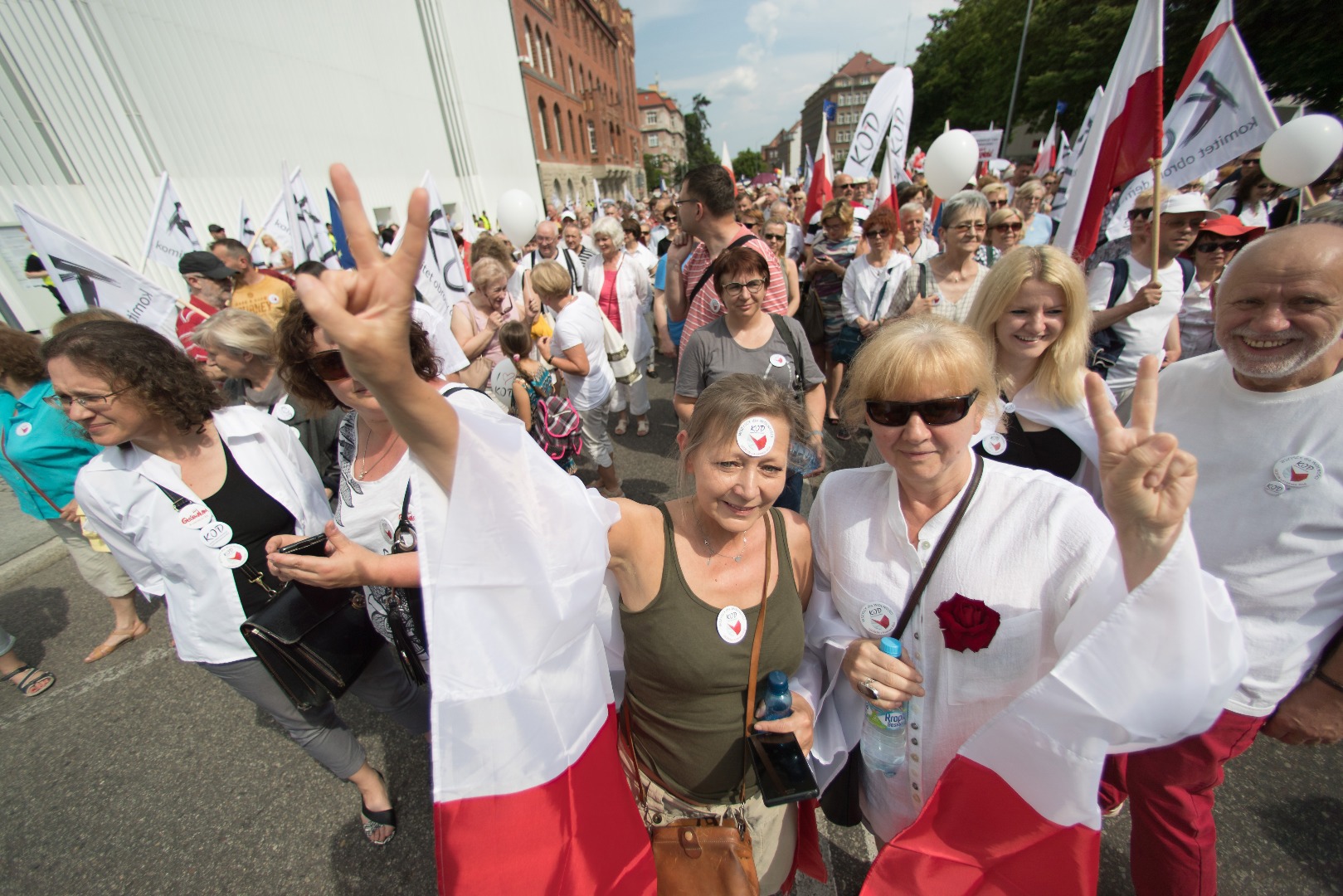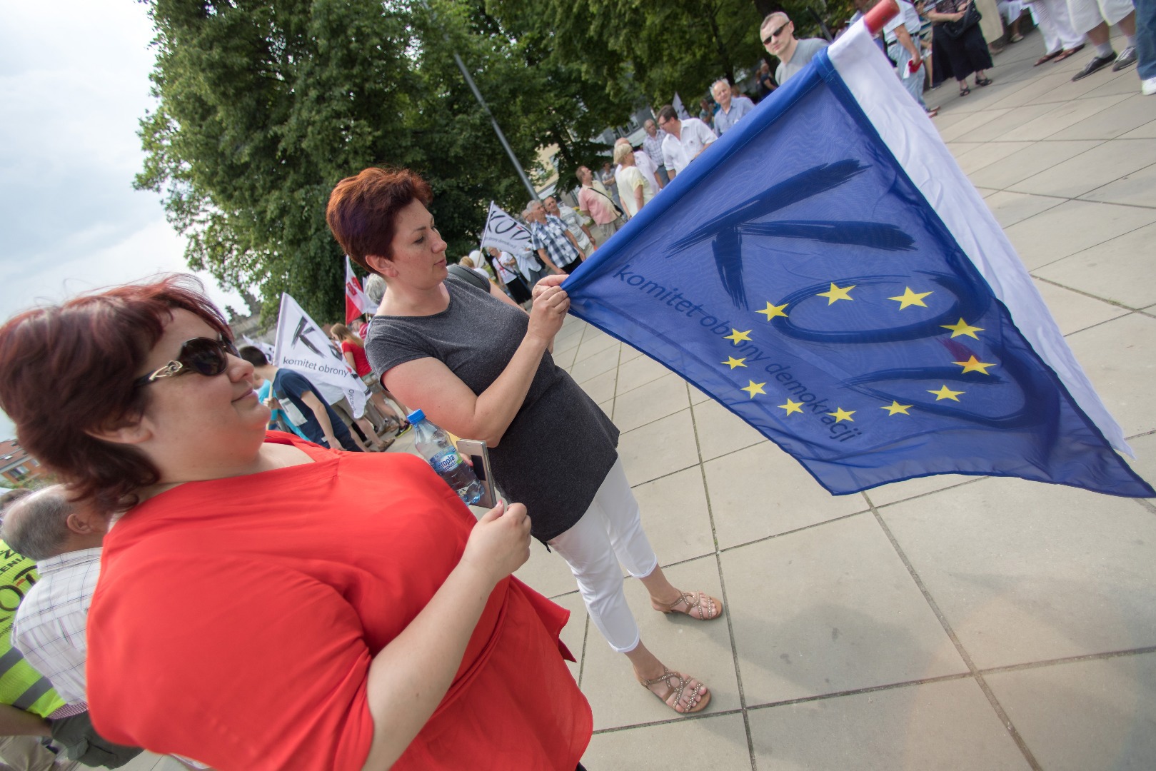 Łańcuch rąk, przy dźwiękach piosenki Johna Lennona - "Imagine" poprzedził toast wodą za wolność na spotkaniu Komitetu Obrony Demokracji na Jasnych Błoniach. Następnie punktualnie o godz. 17 zabrzmiał, podobnie jak na podobnych zgromadzeniach w całej Polsce, hymn państwowy.