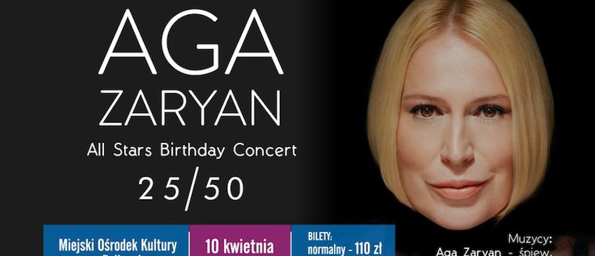 Koncert z okazji 50. urodzin wokalistki oraz 25-lecia jej twórczości artystycznej. Aga Zaryan od lat wyznacza standardy polskiego jazzu. Jej muzyka to dialog klasyki jazzu z nowoczesną narracją, intymnością oraz literacką dbałością o słowo. Towarzyszyć jej będą znakomici muzycy, od lat współtworzący jej artystyczną drogę: pianista Michał Tokaj oraz Robert Majewski, który zagra na trąbce i flugelhornie.