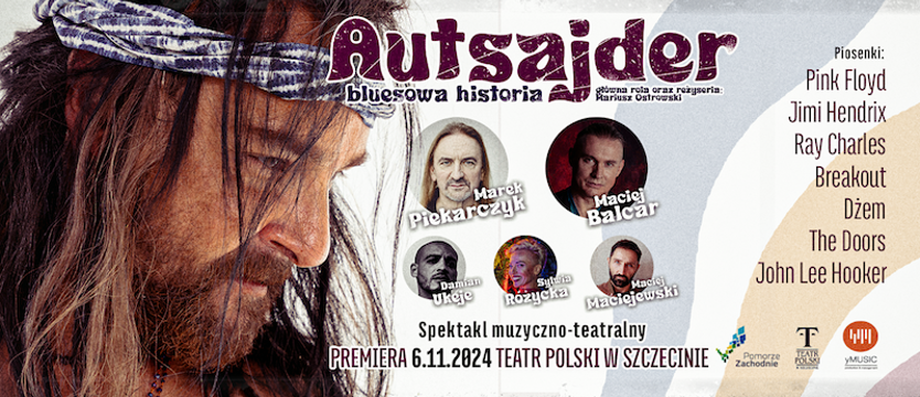 AUTSAJDER jest muzycznym spektaklem utrzymanym w rockowej poetyce, inspirowany literaturą drogi. W spektaklu nie brakuje przemyśleń natury filozoficznej, momentów grozy, elementów humorystycznych czy scen wzbudzających wzruszenie. Muzyka jest łącznikiem pomiędzy prezentowanymi historiami, a także dosłownym do nich komentarzem. Widzowie poczują niezaprzeczalną chęć do życia w wolności, tej dosłownej i tej duchowej. A usłyszą utwory takich Artystów jak Pink Floyd, Jimi Hendrix, Ray Charles, Breakout, Dżem, The Doors czy John Lee Hooker.