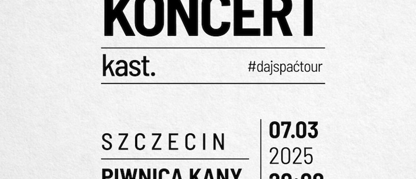 kast. pierwszy raz w Szczecinie zagościł na Festiwalu Młodych Talentów. Teraz powraca z koncertem w ramach trasy #dajspać. Zespół gra alternatywny rock w eklektycznej odsłonie, z dużą ilością brzmień syntezatorowych. Muzyką odpowiada na bodźce, które świat wysyła każdego dnia.