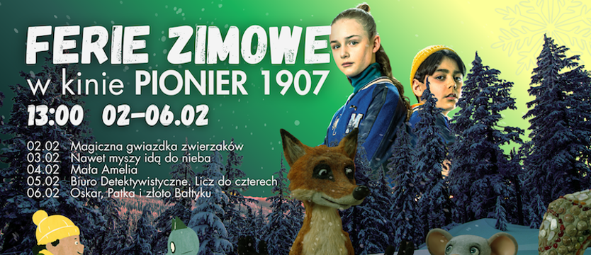 Codzienne seanse familijne w kameralnej, przyjaznej przestrzeni najstarszego kina w Polsce. W programie znalazły się starannie wybrane filmy animowane i familijne, które łączą rozrywkę z wartościowym przekazem. Seanse są doskonałą okazją do wspólnego spędzenia czasu i stworzenia rodzinnych, filmowych wspomnień podczas zimowej przerwy.