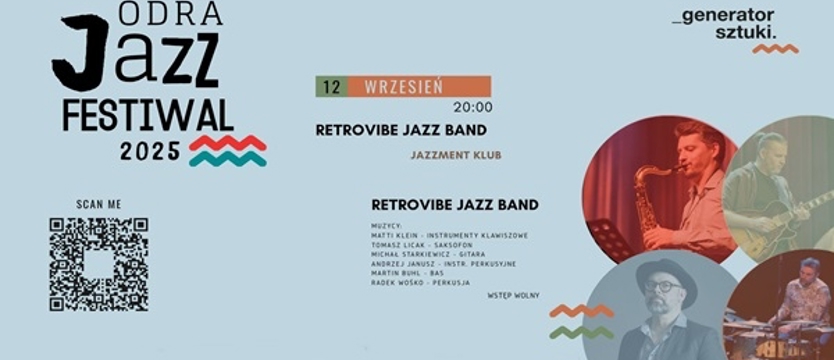 Druga edycja “Odra Jazz Festiwal”. Wystąpi szczecińsko-berliński projekt „RetroVibe Jazz Band”. Zespół łączy estetykę elektrycznego jazzu lat 70. z nowoczesnymi środkami wyrazu, tworząc muzykę osadzoną na pograniczu improwizacji, elektroniki i współczesnych brzmień klubowych. Ich podejście opiera się na kolektywnym graniu, gdzie struktura kompozycji pozostaje otwarta, a każdy utwór rozwija się organicznie, w rytmie chwili.