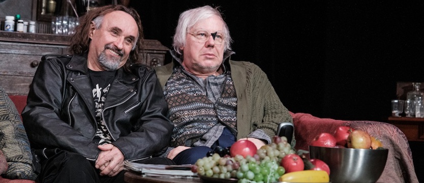 Fabuła spektaklu koncentruje się na relacjach rodzinnych przyrodnich braci, którzy zmagają się z trudnościami związanymi z opieką nad starą i schorowaną matką. Sztuka, napisana w sposób przewrotny, po mistrzowsku prowadzi widza po krętej, wyboistej drodze. Śmiech, wzruszenie, dreszcz grozy, smutek - to mapa tej wędrówki. „Pół na pół” jest tekstem wieloznacznym, unikającym łatwego osądzania. Nie potępia i nie gloryfikuje. Ocenę moralnych postaw bohaterów pozostawia widzom.