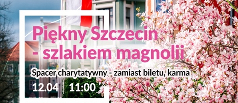Spacer z przewodnikiem śladami szczecińskich magnolii. Spacer poprowadzi Magdalena Hanusz, która podzieli się ciekawostkami na temat tych niezwykłych drzew oraz miejsc, w których rosną. Aby wziąć udział w spacerze, należy przynieść dobrej jakości karmę dla kotów, która zostanie przekazana na rzecz Stowarzyszenia My3, psy i koty z Darłowa.