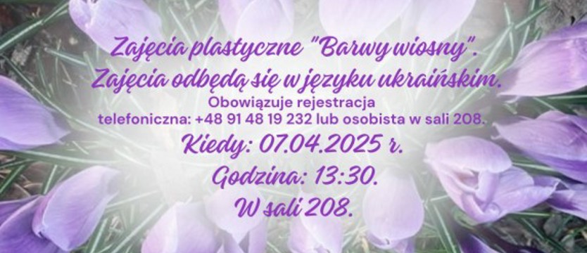 Warsztaty plastyczne "Barwy wiosny" (prowadzone w języku ukraińskim) są pretekstem do pracy nad własnymi emocjami i pozwalają spędzić czas w grupie. Podczas spotkania tworzone będą obrazy przy użyciu suchych liści i farb akwarelowych.