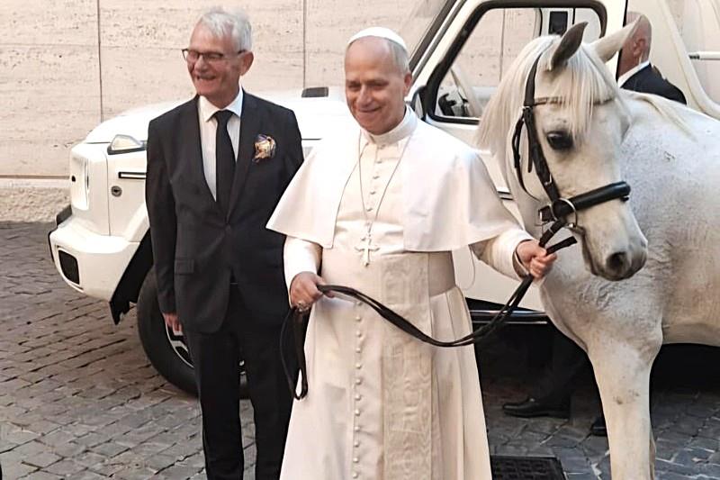 Zwierzę osobiście przekazał papieżowi Andrzej Michalski, który miał zaszczyt uczestniczyć w audiencji generalnej wraz z rodziną i grupą kołobrzeżan. Spotkanie z głową Kościoła katolickiego, w którym uczestniczyła także prezydent Kołobrzegu Anna Mieczkowska, trwało pół godziny. Leon XIV nie krył radości z podarowanego mu konia. Zdecydował, że trafi on do Castel Gandolfo, gdzie poza mieszkalną częścią rezydencji papieża znajduje się również stadnina.
