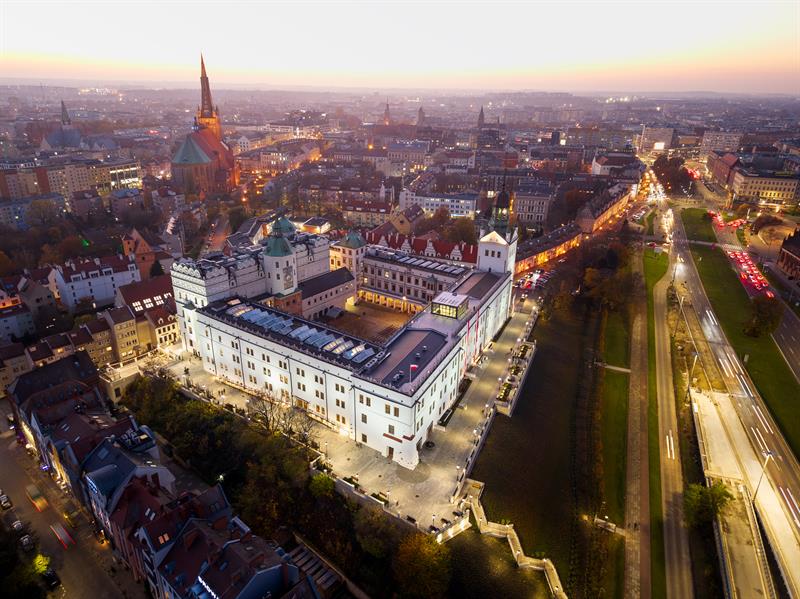 Z tej perspektywy widać też odnowione skrzydło północne i tarasy nad skarpą, które po rewitalizacji stały się świetnym miejscem do spacerów i podziwiania widoków. Po zmierzchu, w ciepłym świetle latarni, ta część miasta nabiera wyjątkowego klimatu – spokojnego, trochę magicznego.