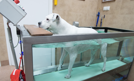 W łódzkiej lecznicy weterynaryjnej do zabiegów rehabilitacyjnych używana jest bieżnia wodna. Zabieg daje doskonałe rezultaty u psów z nadwagą, problemami ortopedycznymi czy neurologicznymi. Na zdjęciu: jedenastoletni pies o imieniu Biały podczas rehabilitacji. Fot...