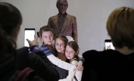 Nie tylko dzieci, lecz także dorośli bardzo chętnie pozowali do zdjęcia z Władimirem Putinem, a właściwie z jego podobizną wykonaną z czekolady. Była ona jedną z wielu figur na odbywającym się w Petersburgu Festiwalu Czekolady. Fot. EPA/ANATOLY MALTSEV