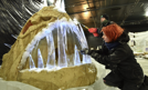 W Elstal w Niemczech trwają przygotowania do największej wystawy rzeźb lodowych. Na zdjęciu: łotewscy artyści pracują nad gigantyczną rybą stworzoną z lodu i piasku. Wystawa ma zostać otwarta pod koniec listopada. Fot. EPA/BERND SETTNIK