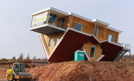 W Bettingen w Niemczech powstaje dom "do góry nogami", gdzie wszystkie elementy odwrócone są o 180 stopni. Ta nowa atrakcja turystyczna zostanie otwarta pod koniec listopada. Fot. EPA/KARL-JOSEF HILDENBRAND