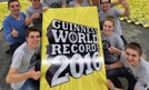 Patrick Sinner ze swoją grupą pobił rekord Guinnessa podczas targów książki we Frankfurcie nad Menem. Zespół ustawił na wzór domina 10200 Ksiąg rekordów Guinnessa i przewracając jedną z nich uruchomił falę upadających książek. Fot. EPA/ARNE DEDERT