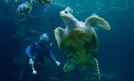 Żółwica z oceanarium w Stralsundzie w Niemczech obchodziła ostatnio swoje 50. urodziny. W akwarium, które ma pojemność 350 tysięcy litrów, czekała na nią niespodzianka. W dniu swojego święta otrzymała od opiekunów tort z kalmarów i mintaja. Fot. EPA/STEFAN...