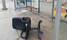 Tego fotela prawdopodobnie nikt tu nie wywalił. Jako tzw. gabaryt pokonał drogę na kółkach ze śmietnika, z którego jakiś dowcipniś zawlókł go na przystanek „Odzieżowa” przy al. Wyzwolenia. Nie odpowiadała mu twarda ławka wiaty? (kl)