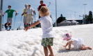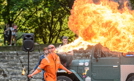 Cyrk w Lublinie – bez areny, bez namiotu. Artyści występowali na jednym z podwórek przed osiedlową publicznością. Efektownymi pokazami zapraszali ją na Carnaval Sztukmistrzów. Fot. PAP/Wojciech PACEWICZ