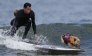 Kto powiedział, że surfing jest tylko dla ludzi? Coraz częściej na świecie odbywają się surfingowe zawody tandemowe, w których właścicielowi towarzyszy pies. Ostatnie odbyły się w Kalifornii. Fot. EPA/John G. MABANGLO