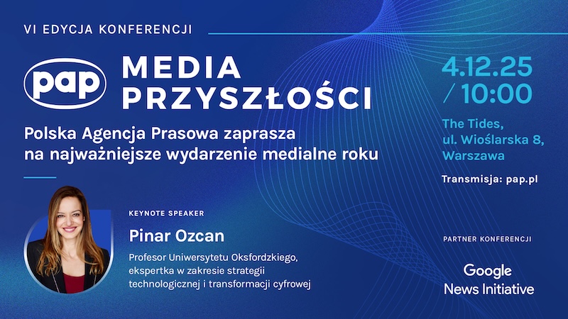 Już 4 grudnia w Warszawie odbędzie się szósta edycja konferencji „Media Przyszłości”, organizowana przez Polską Agencję Prasową. Tegoroczną keynote speakerką będzie jedna z najbardziej wpływowych ekspertek świata technologii - prof. Pinar Ozcan z Uniwersytetu Oksfordzkiego, wyróżniona m.in. przez Thinkers50 oraz prestiżowy ranking Poets&Quants „40 Best Business School Professors Under 40”.